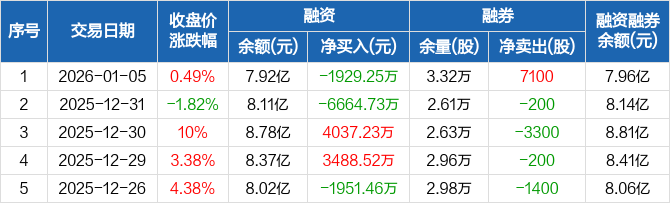 浙江荣泰:融资净偿还1929.25万元,融资余额7.92亿元(01-05)