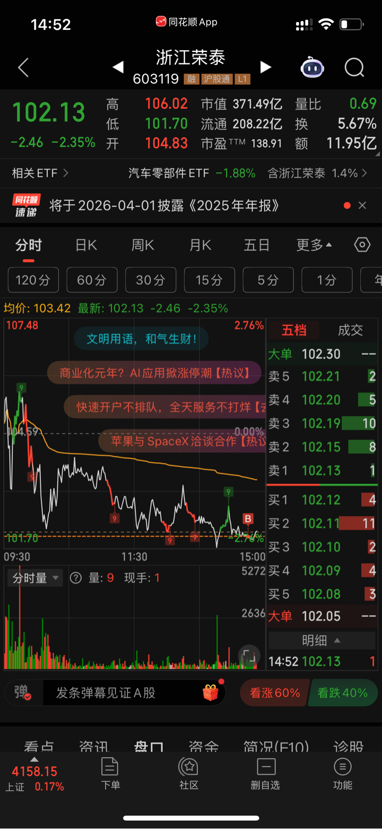 $浙江荣泰(SH603119)$ 明天不知道会不会轮动到机车人,机车人板块是这批跌的最早最久的