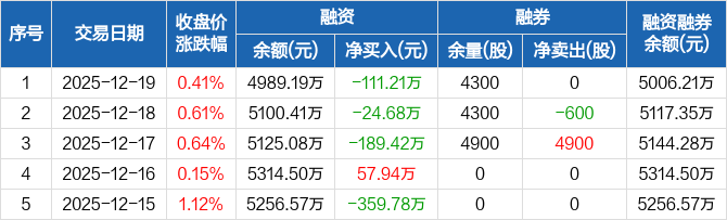 肯特催化:连续3日融资净偿还累计325.31万元(12-19)