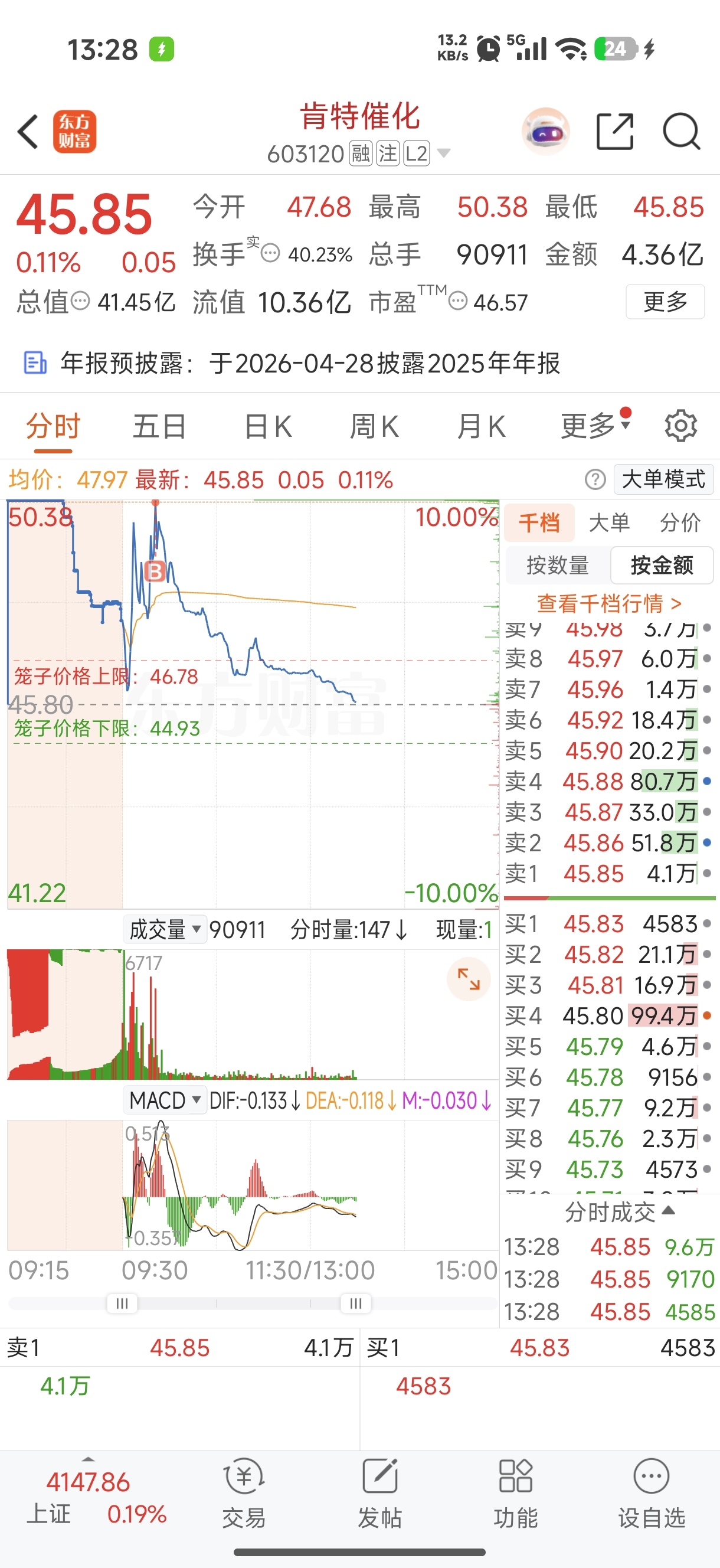 $肯特催化(SH603120)$ 也是打到最难出的天地板了