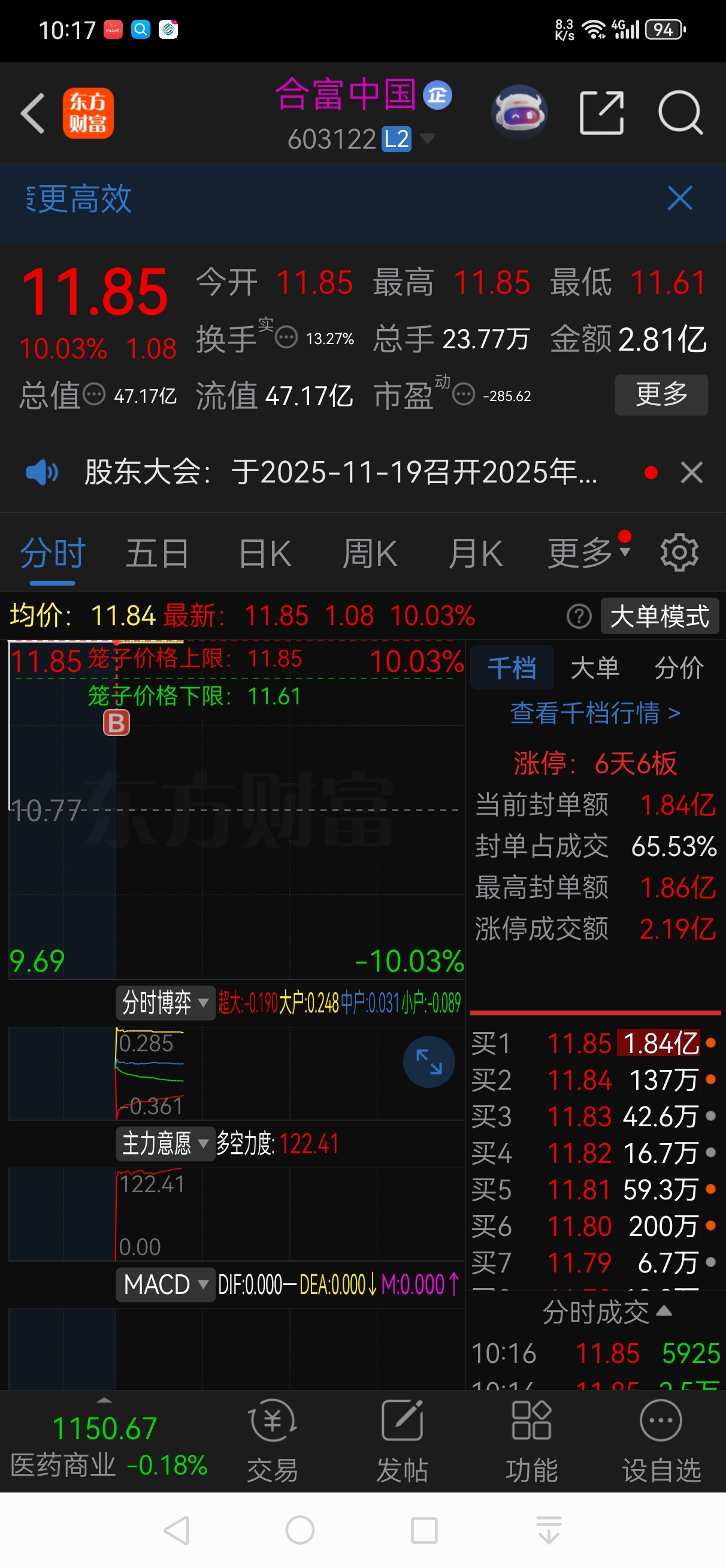 $合富中国(SH603122)$ #实盘记录# 今日打板合富中国
