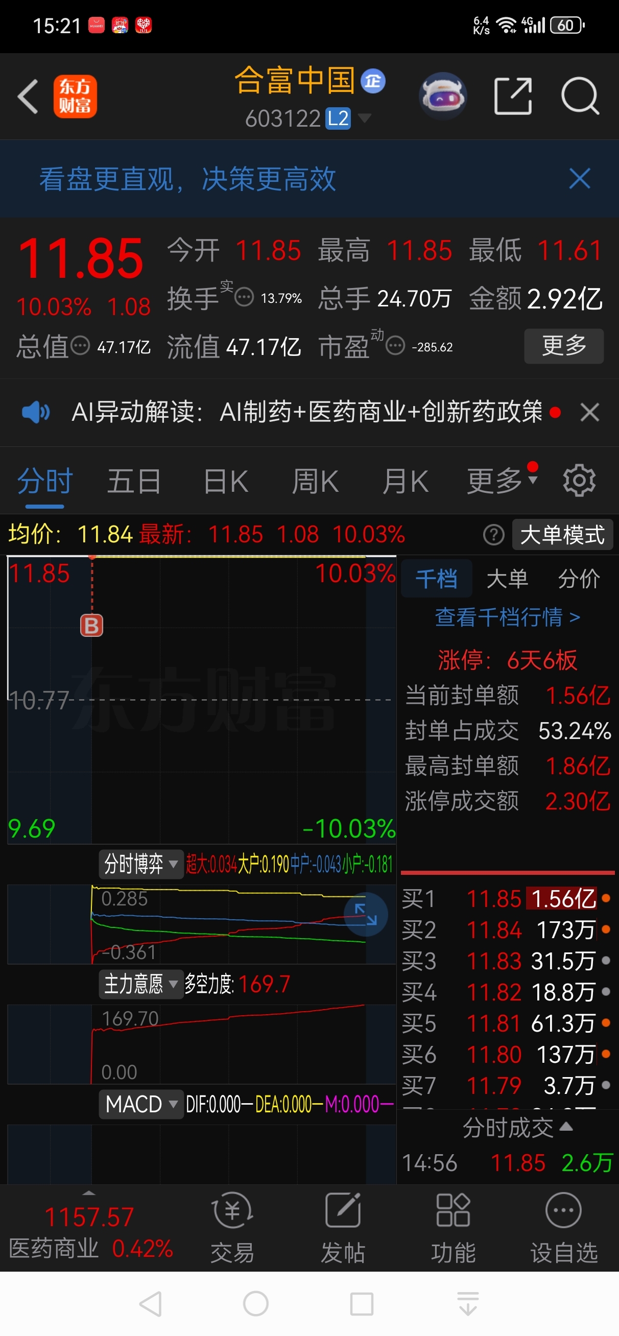 今日开盘后涨停价买入:合富中国