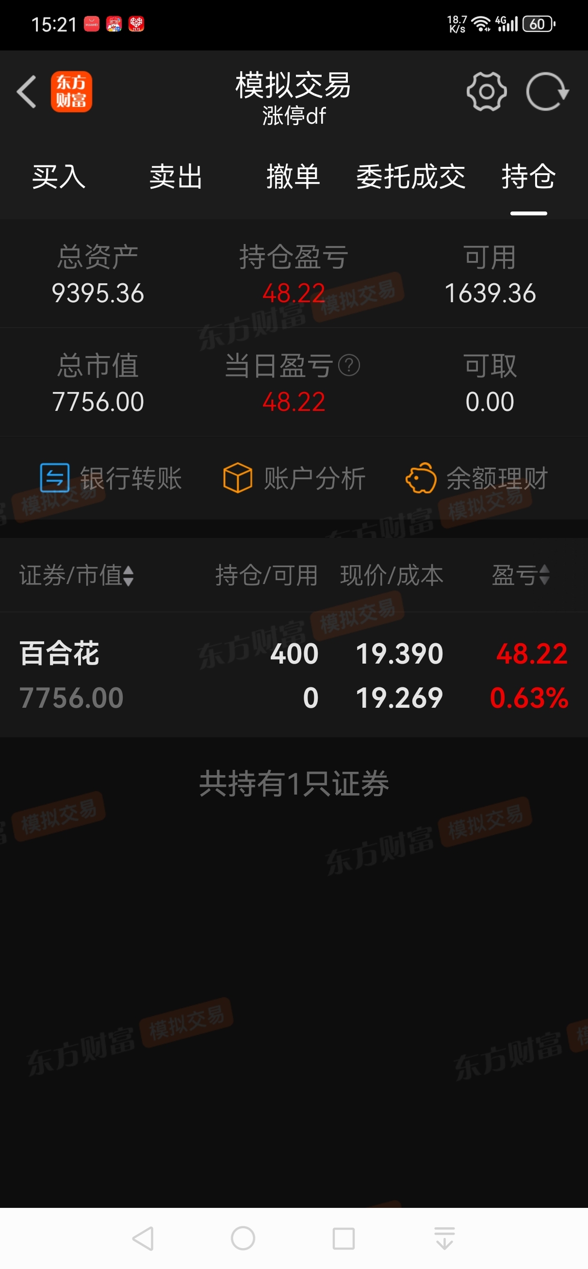 模拟盘买入百合花