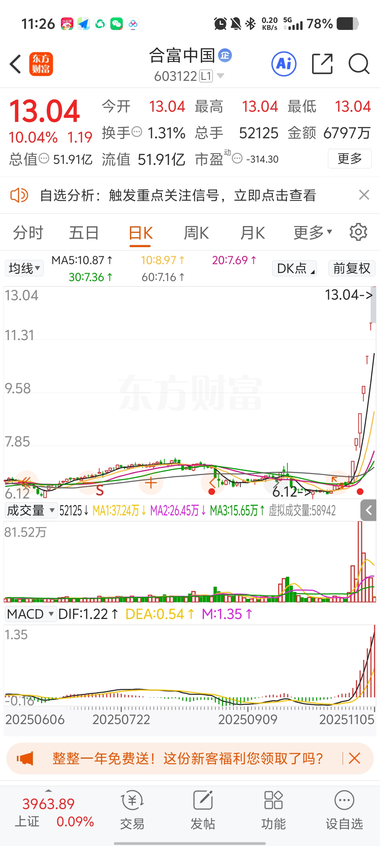 $合富中国(SH603122)$ 十月 30 号放十倍量到七亿竟然还继续纵云梯(当然可能总盘子太小,容易控),不过这个炒的又是啥