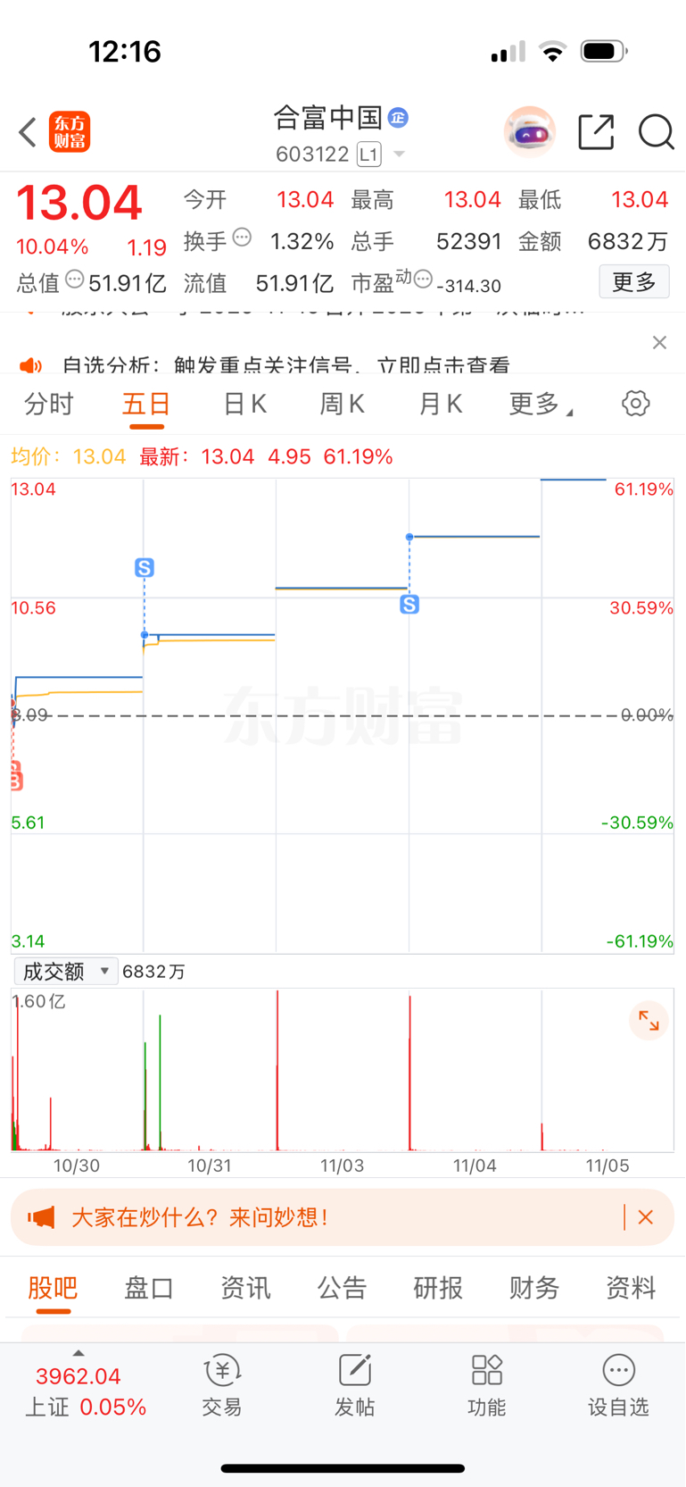 $合富中国(SH603122)$ 剩下一点不卖了 看你涨到几板