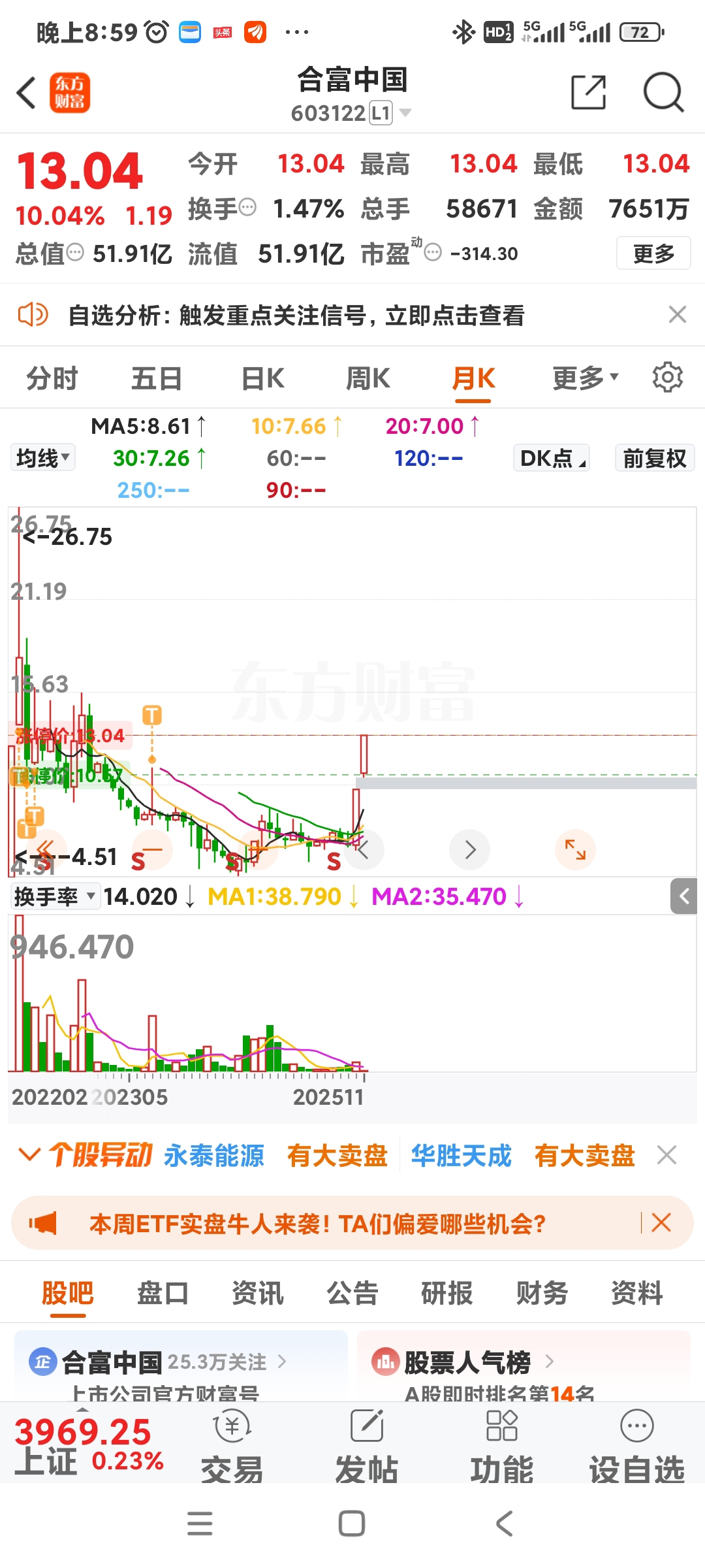 $合富中国(SH603122)$ 什么鬼突然暴涨卧槽死踏马了