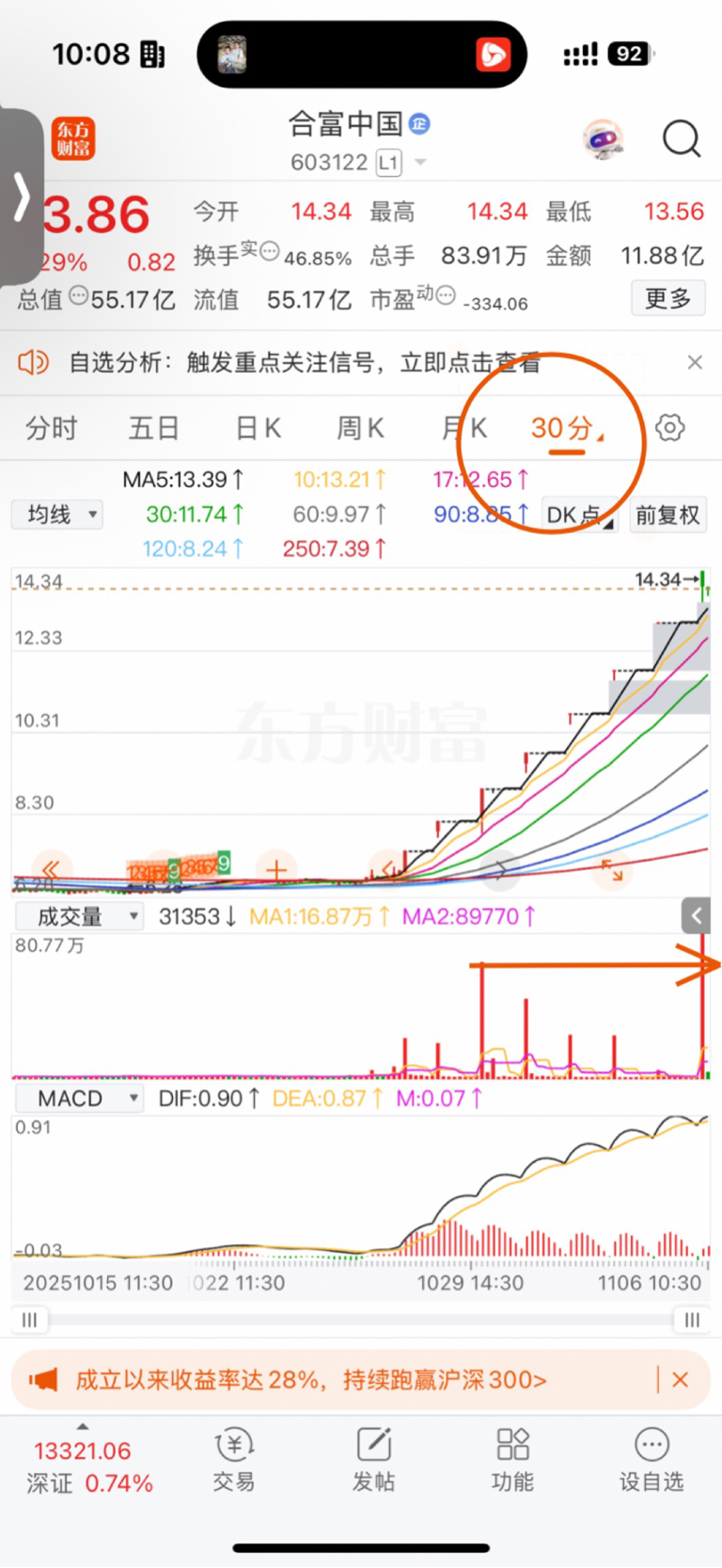 $合富中国(SH603122)$ 30分钟级别放量可以撤退了