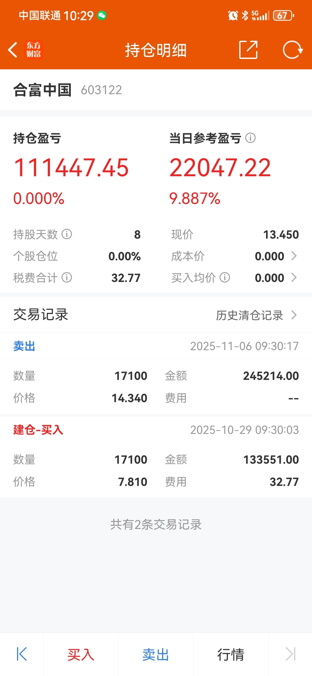 $合富中国(SH603122)$ 感谢大哥,让我赚11万离场