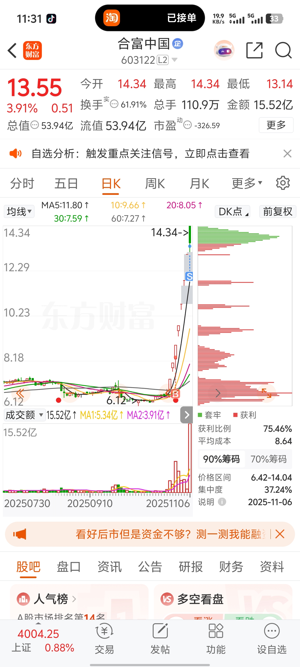 $合富中国(SH603122)$ 家人们我真拿不住了,格局一上午了