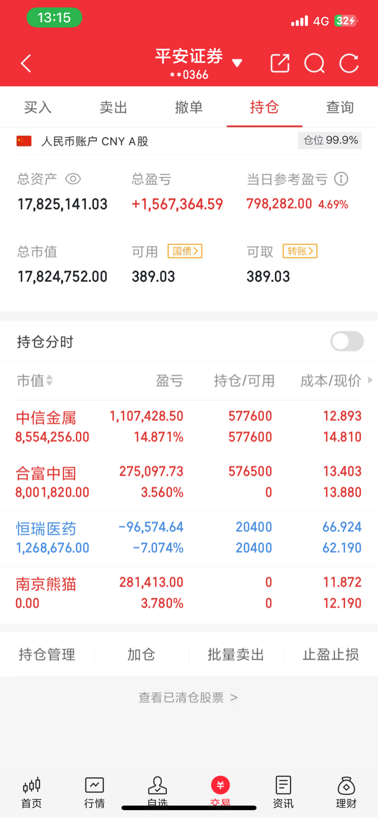 持有:$恒瑞医药(SH600276)$ $中信金属(SH601061)$ 这两支具备增长潜力,我满怀期待,相信随着后续市场的发展,达成盈利目标。