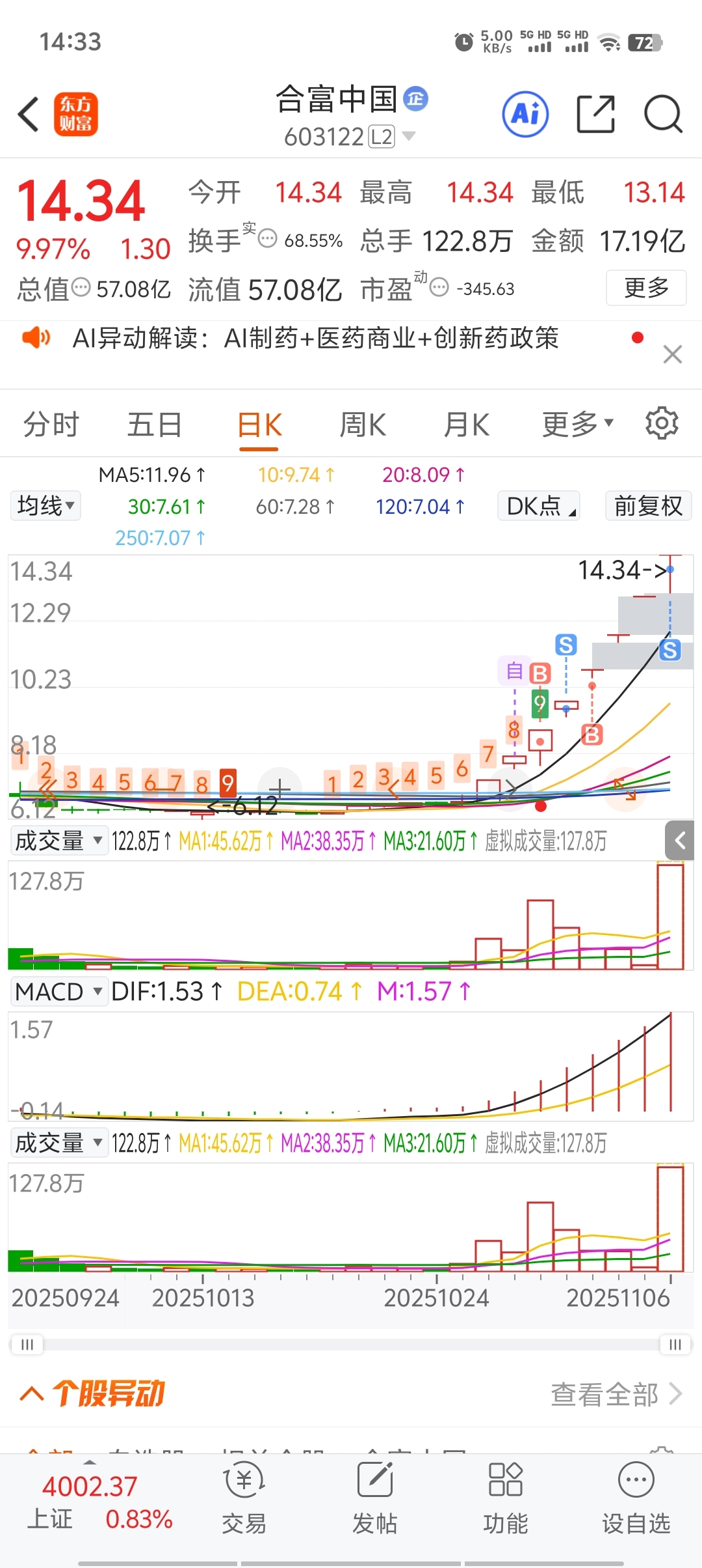 $合富中国(SH603122)$ 机会是等来的,钱也是坐着等来的