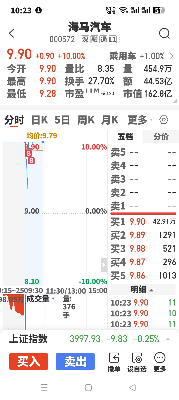 $合富中国(SH603122)$ 合富中国今天不太行。一健清仓入了海马汽车