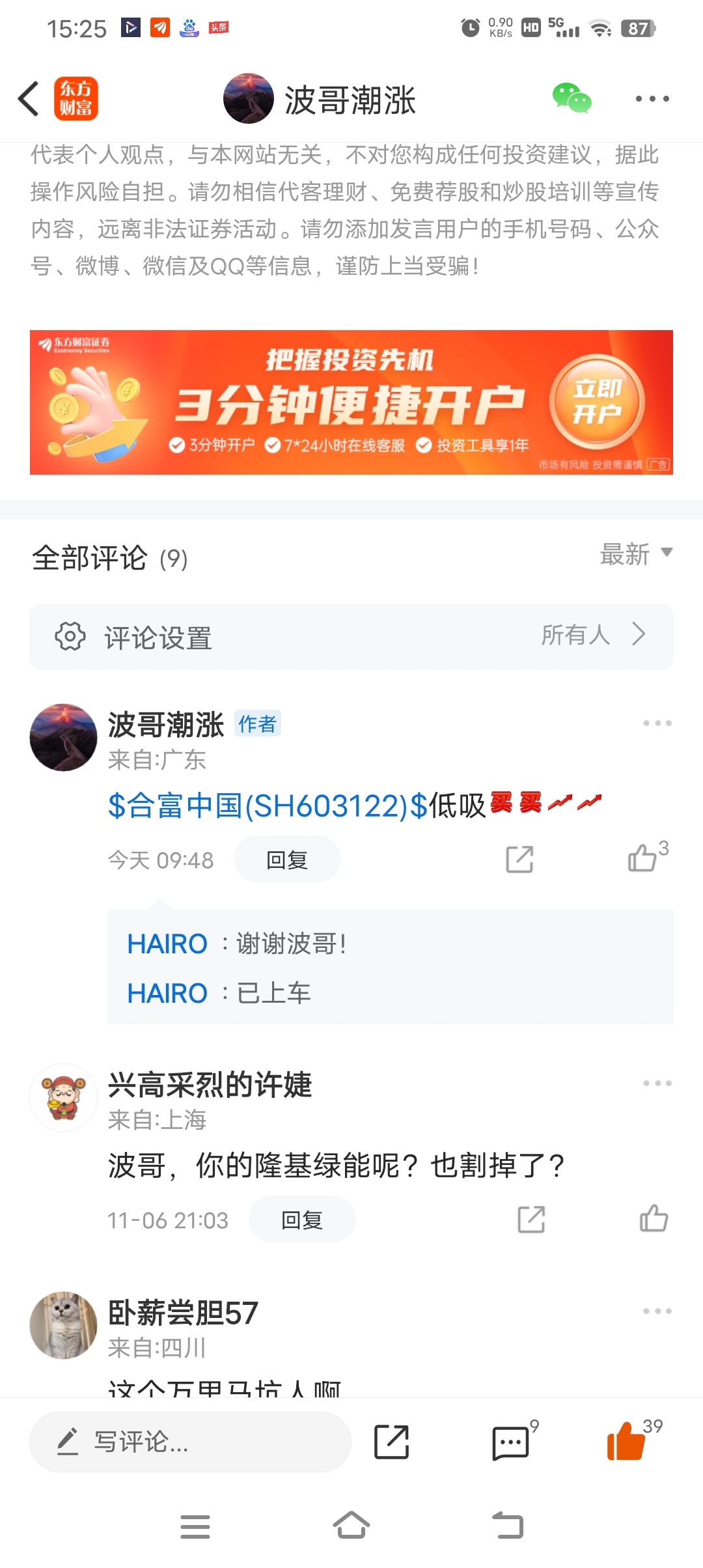 温馨提示: 1.根据《证券法》规定,禁止编造、传播虚假信息或者误导性信息,扰乱证券市场;2.用户在本社区发表的所有资料、言论等仅代表个人观点,与本网站立场无关,不对您构成任何投资建议。用户应基于自己的独立判断,自行决定证券投资并承担相应风险。《东方财富社区管理规定》