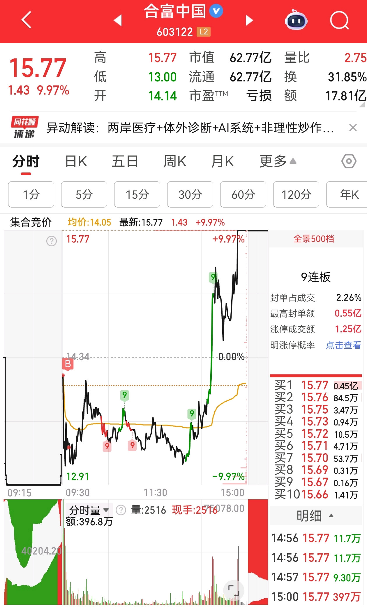 $合富中国(SH603122)$ 今天买不完,根本买不完!