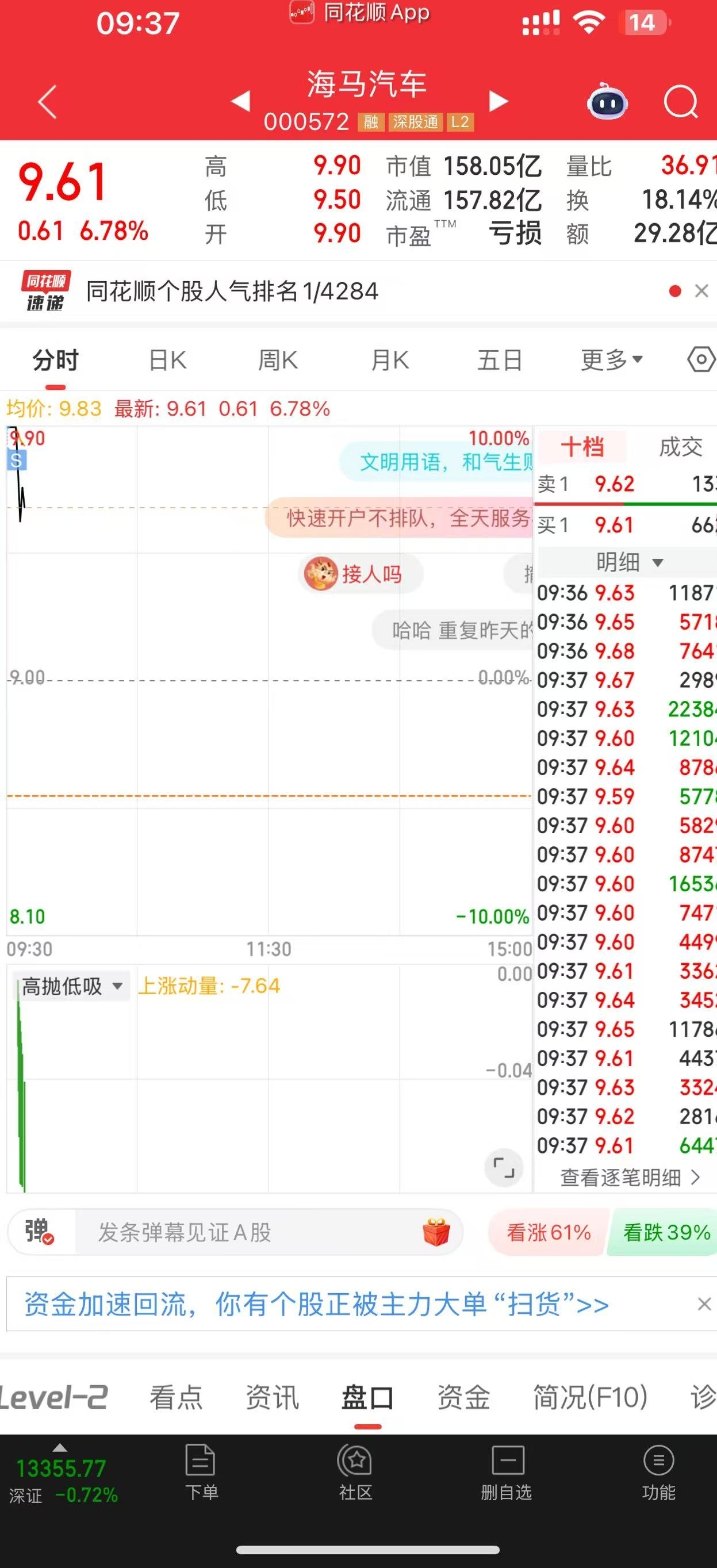 $合富中国(SH603122)$ 我这个操作有人给200分,图一图二是海马汽车这两天的操作,图三是今天合富中国的买点,虽然买了合富中国,今天盈利27.77%,但还是看好海马汽车再后续的妖股竞争中胜出!!!