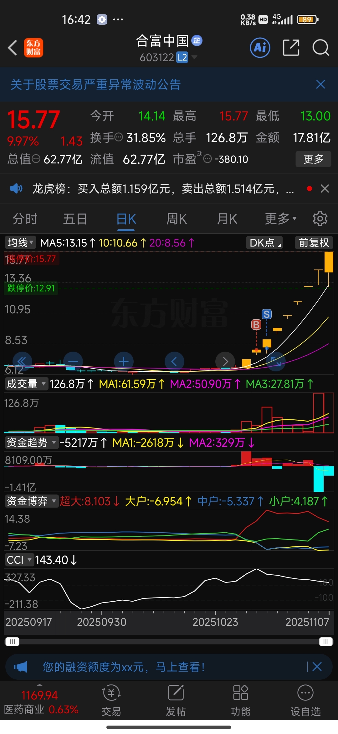 $合富中国(SH603122)$ 满仓卖飞,错过翻倍,今年最大遗憾