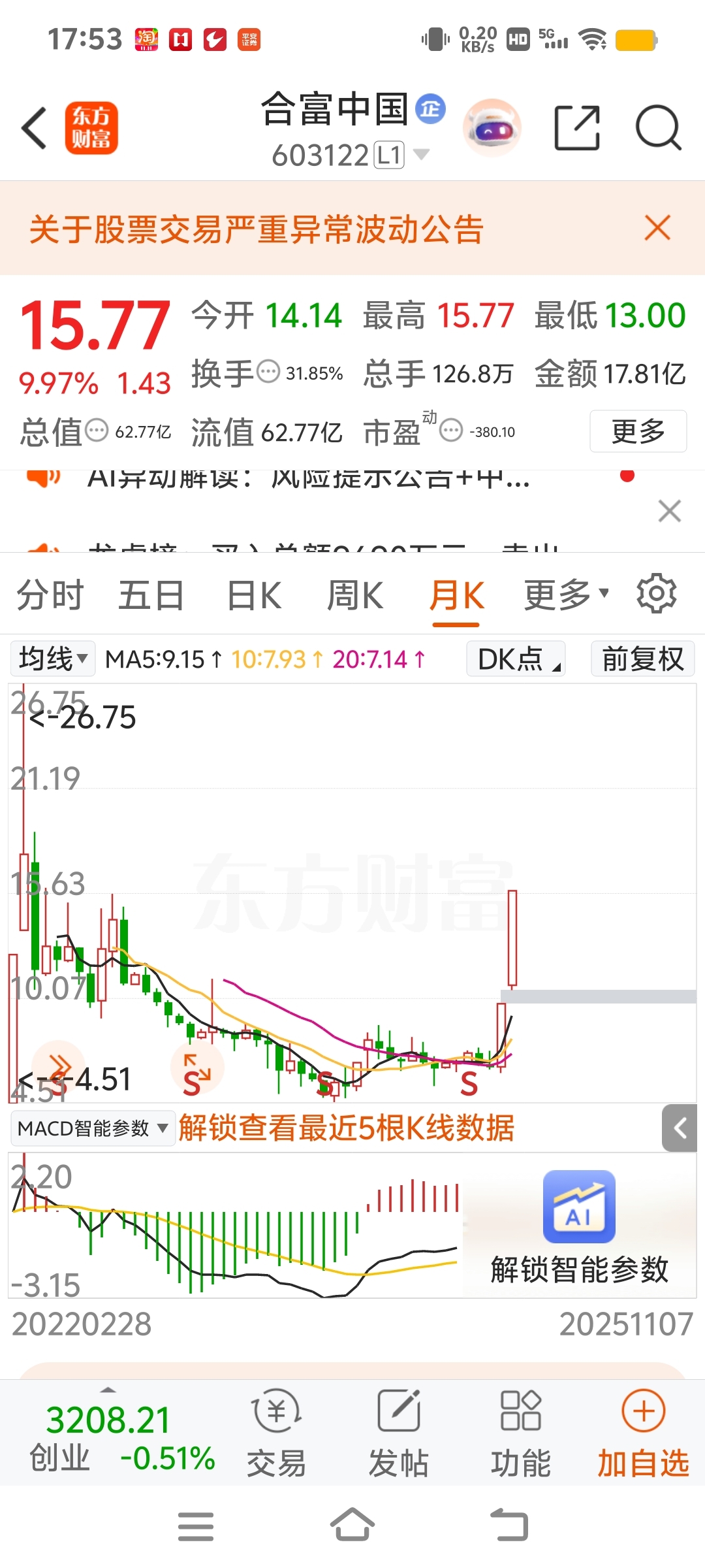 $合富中国(SH603122)$  股票还在底部区域,26块之前都是买点,一路长虹