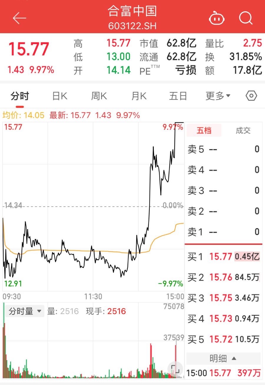 2025年11月7日,大牛股合富中国(603122.SH)尾盘直线拉升封死涨停板,截至收盘报15.77元/股,涨幅9.97%,豪取9连板。这一走势发生在公司密集提示非理性炒作风险之后,形成股价狂欢与业绩承压的强烈反差。
