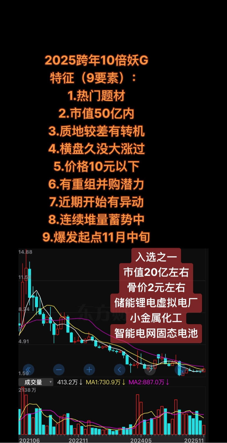 2025跨年10倍妖股特征(9要素):图片归纳如下及入选标的之一(多点关注炒股不