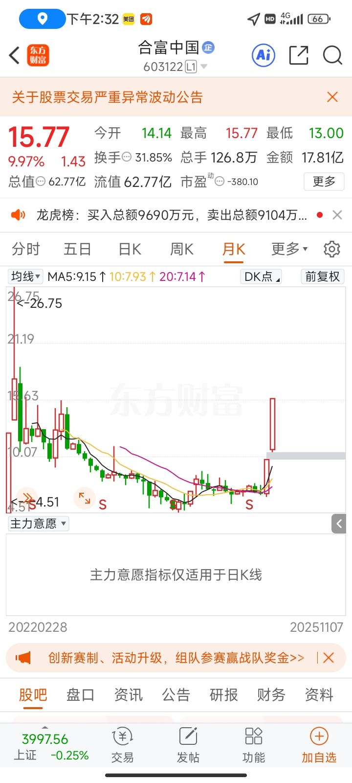 $合富中国(SH603122)$ 奶奶的熊,我26块买的合富中国还在啊,坚持到底就是胜利