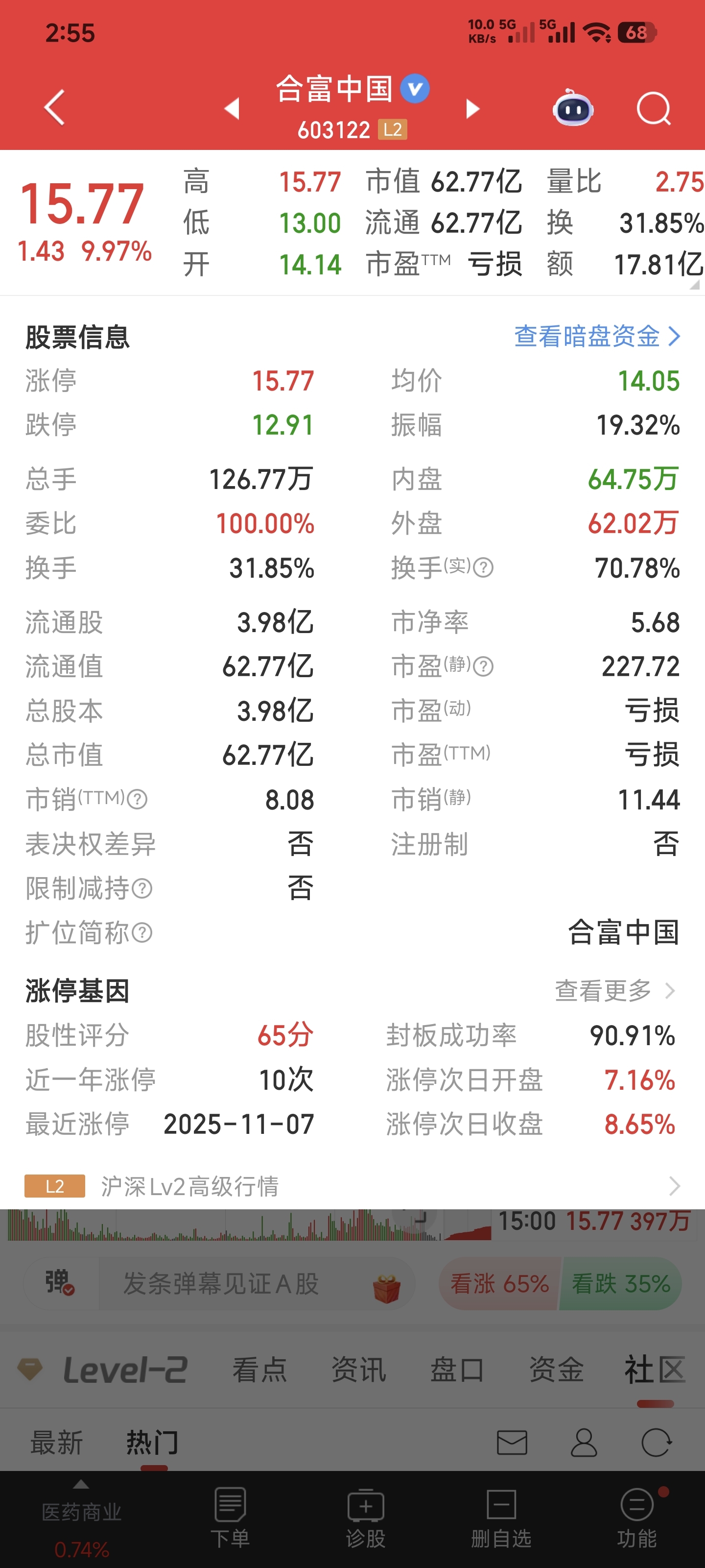 $合富中国(SH603122)$ 连续几天70%的换手,击鼓传花的游戏看谁接最后一棒