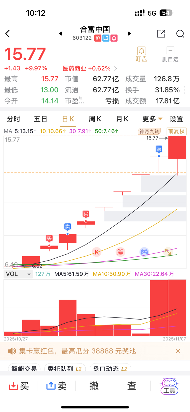 该股票从二板开始关注,周四分歧日卖在高点,周五在最低点又接回来了,一天20个点的