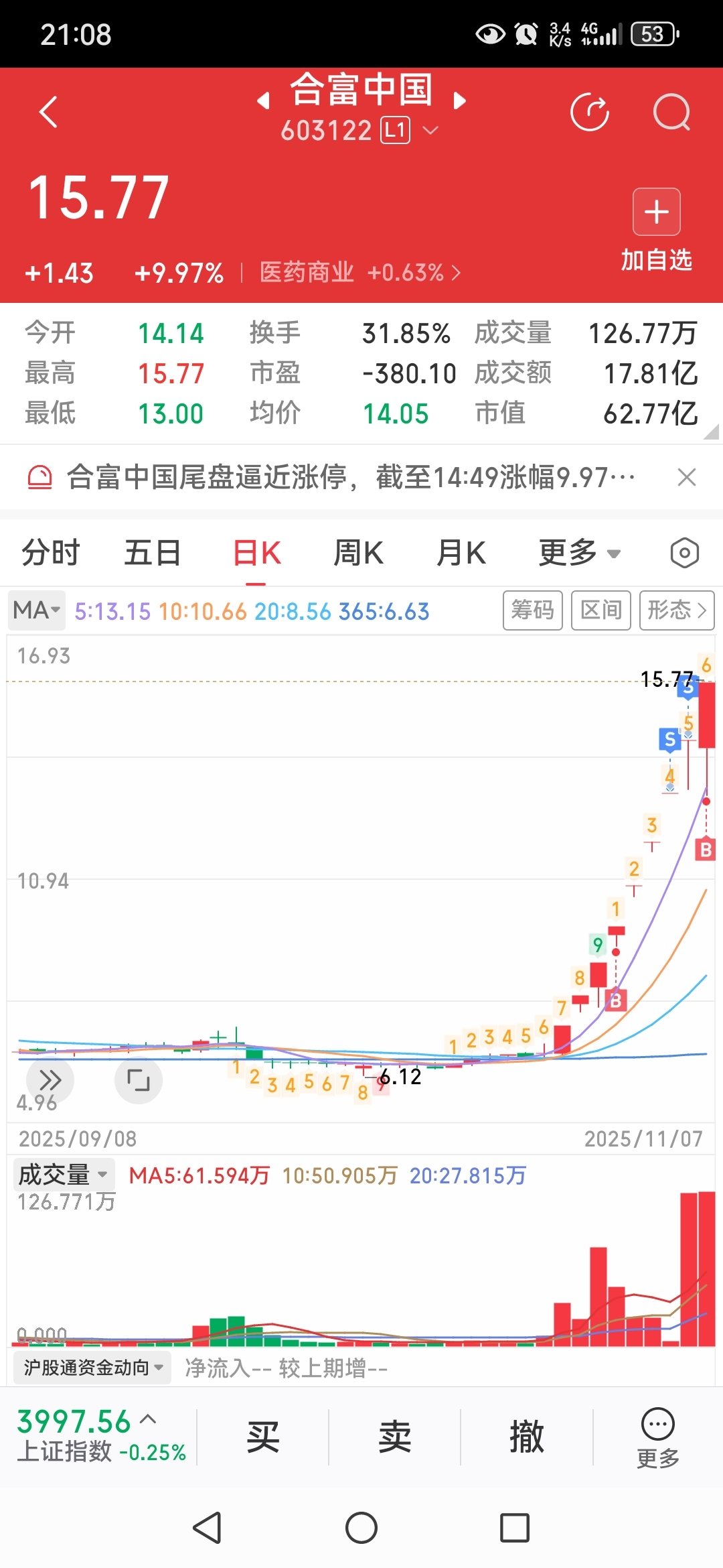 $合富中国(SH603122)$ 留下的兄弟姐们继续格局住,天空才是尽头,祝发财。原始初衷是准备一直拿到跌停才走,奈何认知、心性、理解力确实还欠缺的多,认知在哪里,卖点就在哪里。