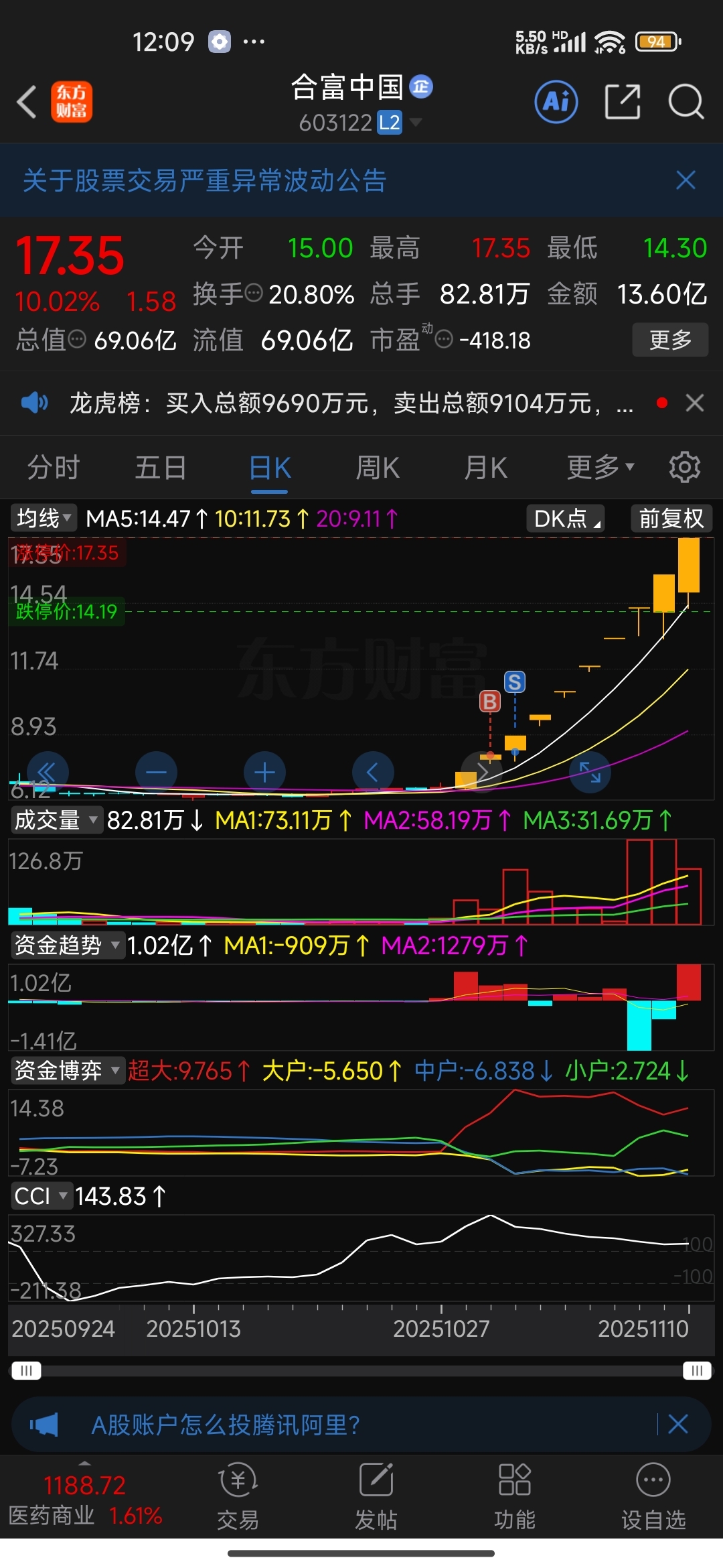 $合富中国(SH603122)$ 满仓卖飞翻倍大牛,痛