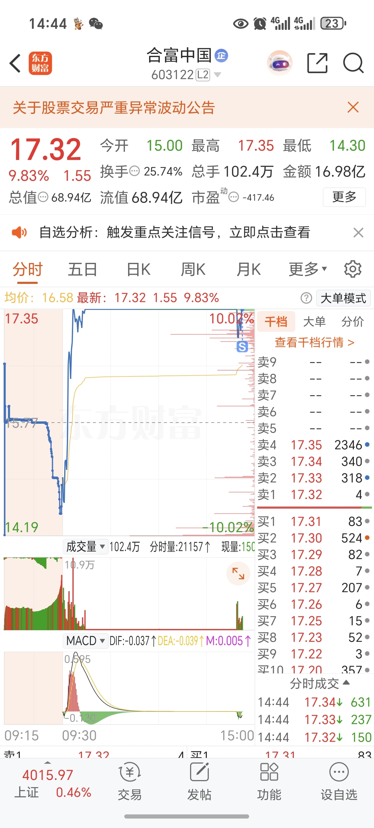 $合富中国(SH603122)$ 落袋为安了,高位其他票负反馈太大了,合富有点被拖累了,这个是被动炸板