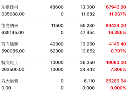 第二只,德方纳米!今天玩了把 “先 S 后 B”,原计划做 T 降成本,结果操作得还挺完美,仓位没变,成本倒是降了不少!有人说 “做 T 太难了,我总卖飞”,其实我之前也经常卖飞,后来慢慢总结出个规律:涨多了就减点,跌下来再接,别贪多,每次能降一两个点就满足,积少成多嘛。