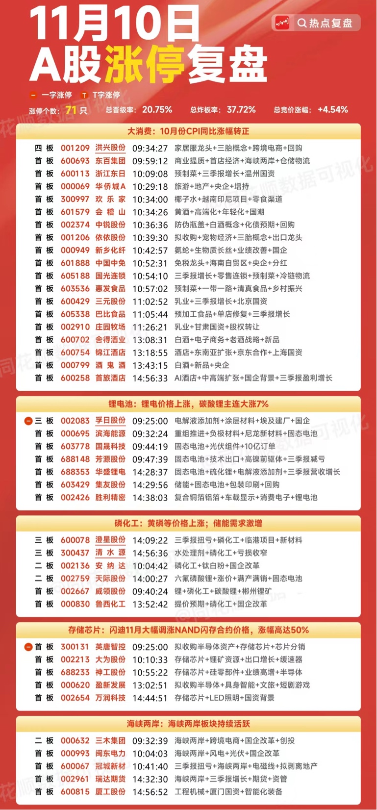 11月10日各大板块涨停个股&游资龙虎榜复盘免责声明:本文基于公开数据,仅供参考
