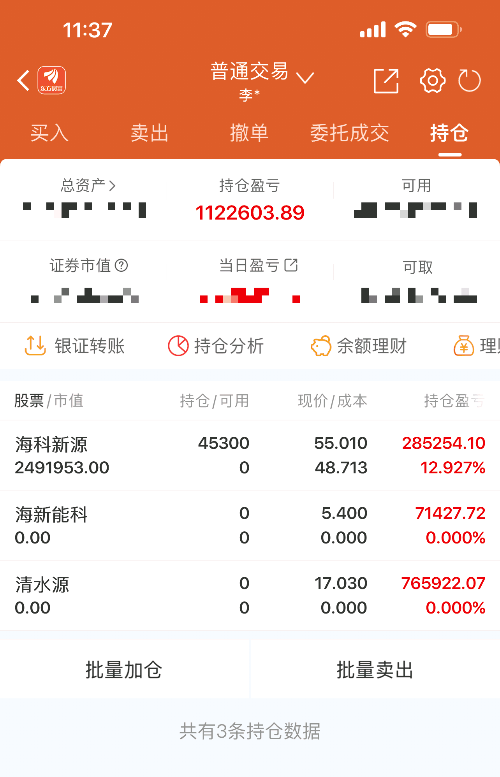 今日市场再度呈现强势震荡的格局。从沪指分时图中可以清晰看出,代表权重的白线走势相对较弱,而代表个股的黄线则表现得更为强势,这一特征直接表明今日个股有显著的上涨行情。这种个股强、权重弱的情况,实则是市场的一种良性表现。因为若权重走得过于强劲,市场极有可能演变为疯牛行情。而目前指数并未直接走出趋势性行情,而是延续个股行情的发展态势,这无疑为股市上涨拓展了空间,延长了上涨周期。相比之下,慢牛行情更有利于我们进行稳健投资,能够让我们有更多时间去分析市场、把握机会,实现资产的稳步增值。(投资有风险,以上内容不作为投资建议,请勿炒作业)$海科新源(SZ301292)$