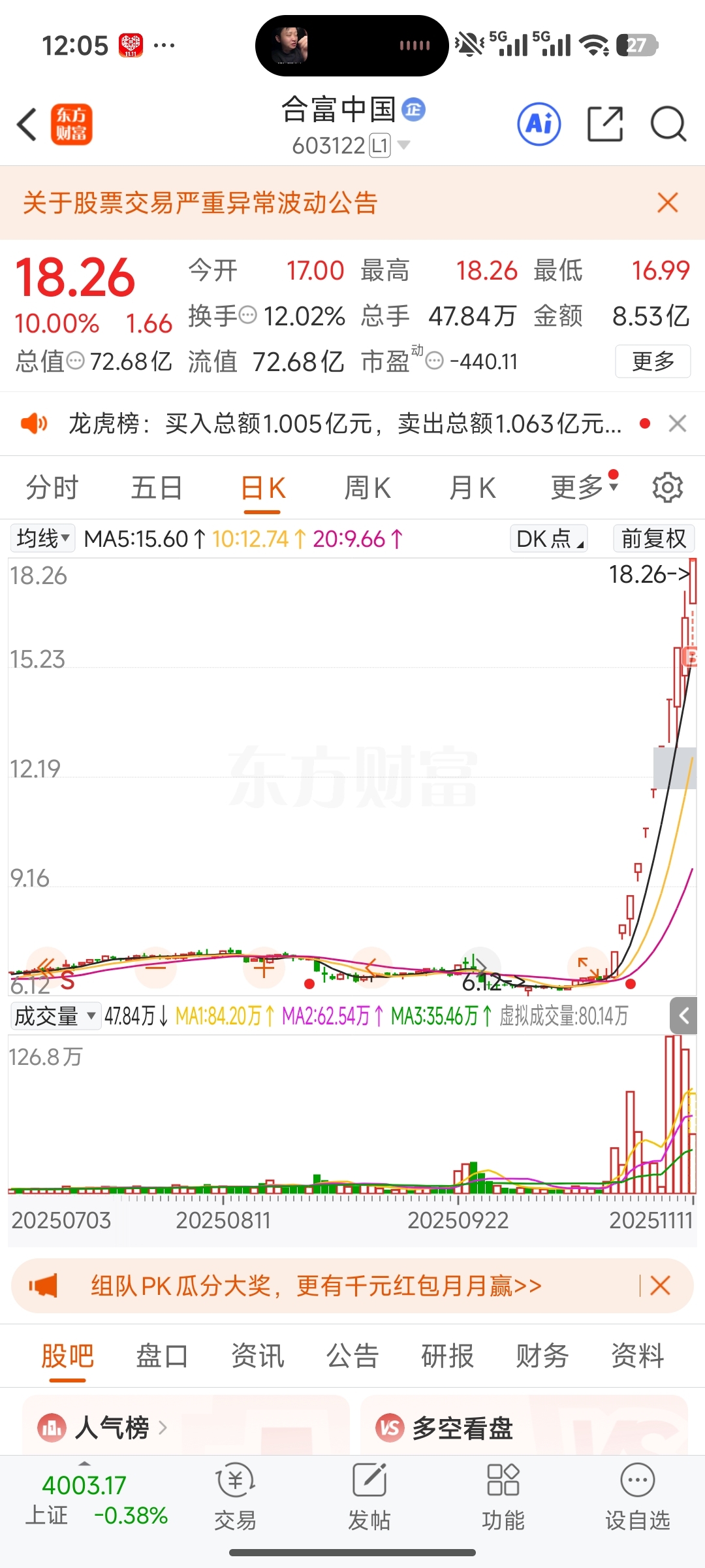 $合富中国(SH603122)$ 很多年前,一个人跟我说过。人最珍贵的天赋叫,勇敢。