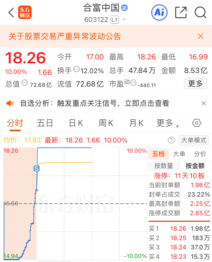 $合富中国(SH603122)$ 说句实话在这个票赚了一点小钱,但是我昨夜几乎没睡,留下怕回撤,走了怕卖飞,见过几波思想斗争,我还是决定走了。毫无留念,坚决执行,竞价就按出去了。恐高心里太煎熬了。我承认我离龙头选手还有很大差距。主要还是认知不够。虽然卖飞了,但是出来的那一瞬间我整个人都轻松了不少。祝留下的兄弟们再接再厉,涨到月底。