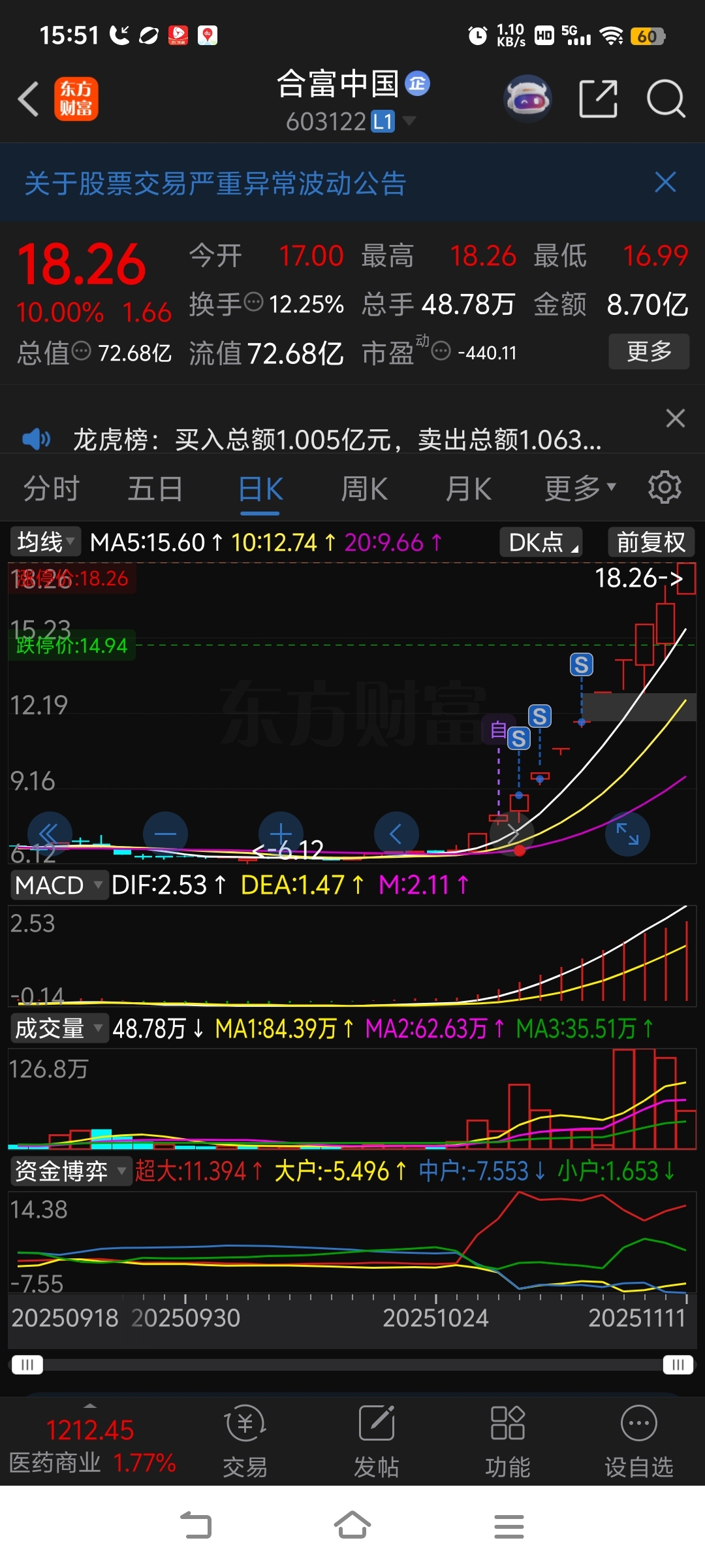 $合富中国(SH603122)$ .6.3成本卖在山地下