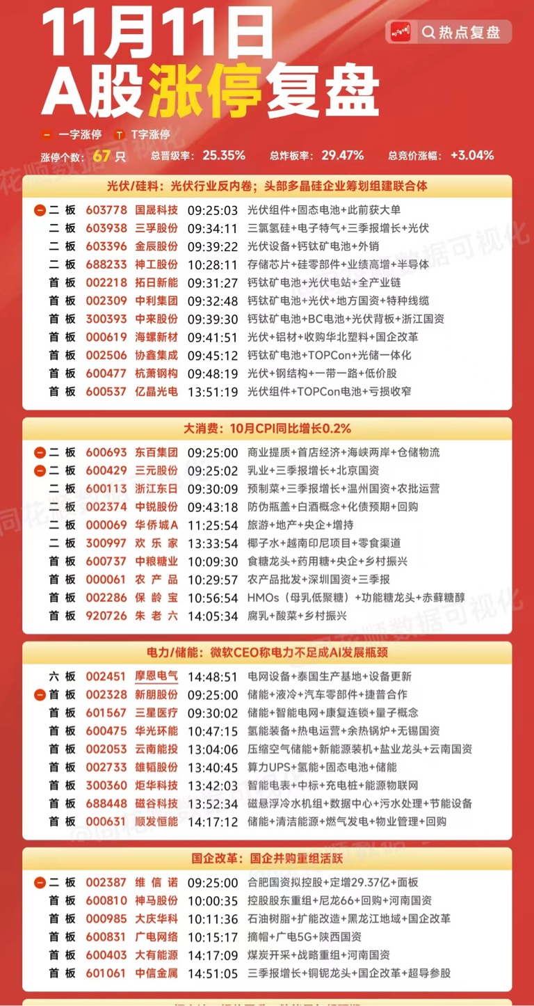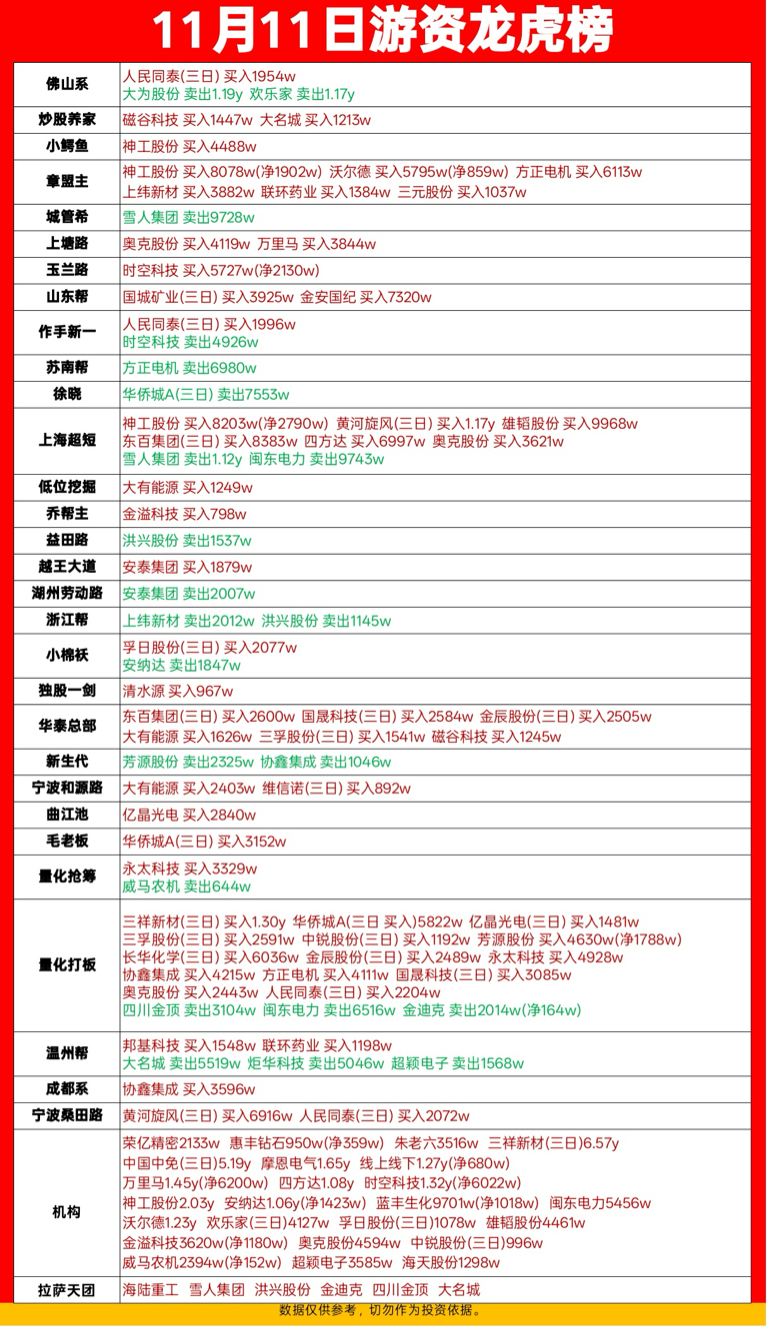 11月11日各大板块涨停个股&游资龙虎榜复盘免责声明:本文基于AI生产,仅供参考