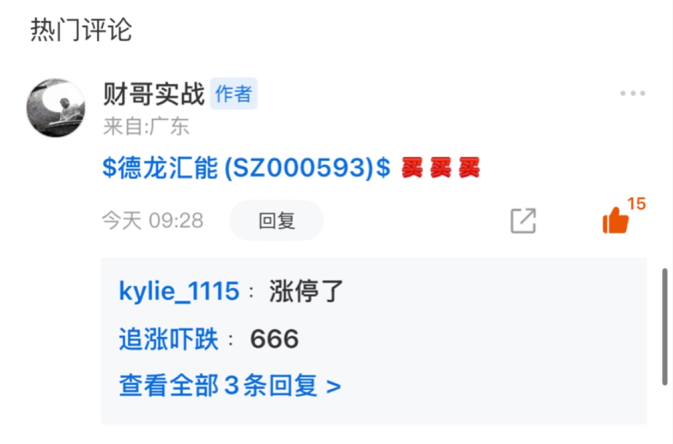 $德龙汇能(SZ000593)$ 近期趋势良好今日没有理由不拿个先手 早盘介入博弈成功 拿下涨停