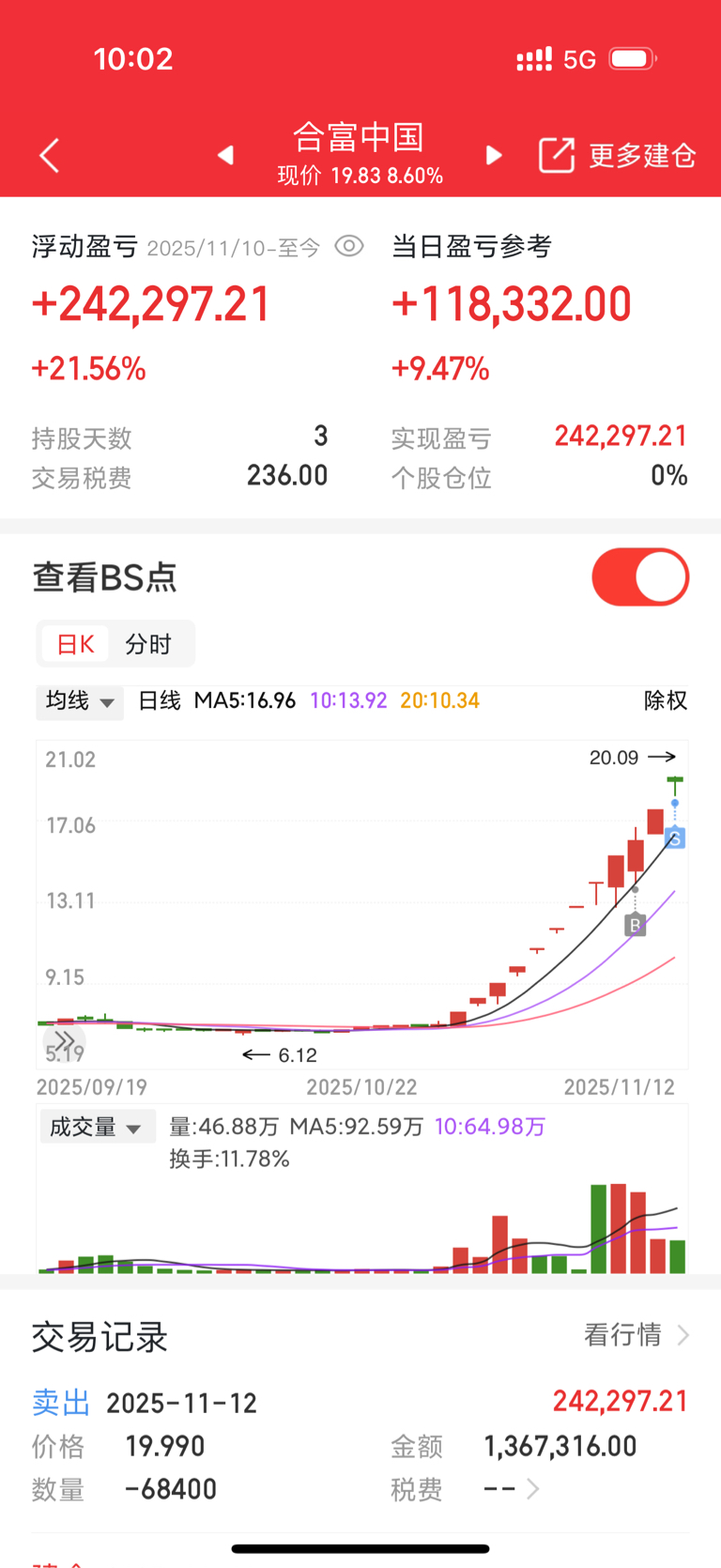 $合富中国(SH603122)$ 落袋,3天吃了22个点,满意