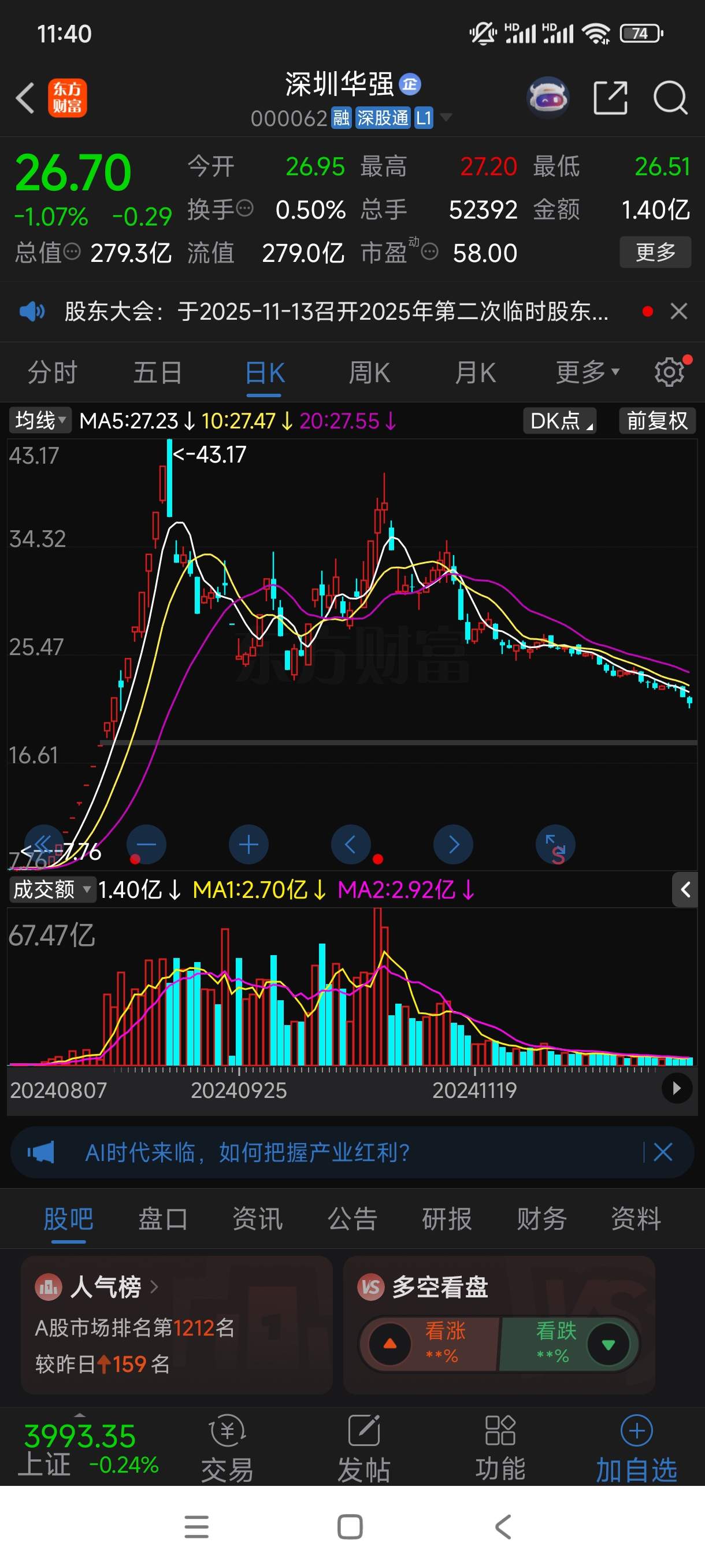 $合富中国(SH603122)$ 这只股票跟深圳华强一样,最终的结果就是A杀。上次深圳华强A杀到底部被我抄底还赚了一笔,这次我就等你A杀以后再买,看你还能涨多久