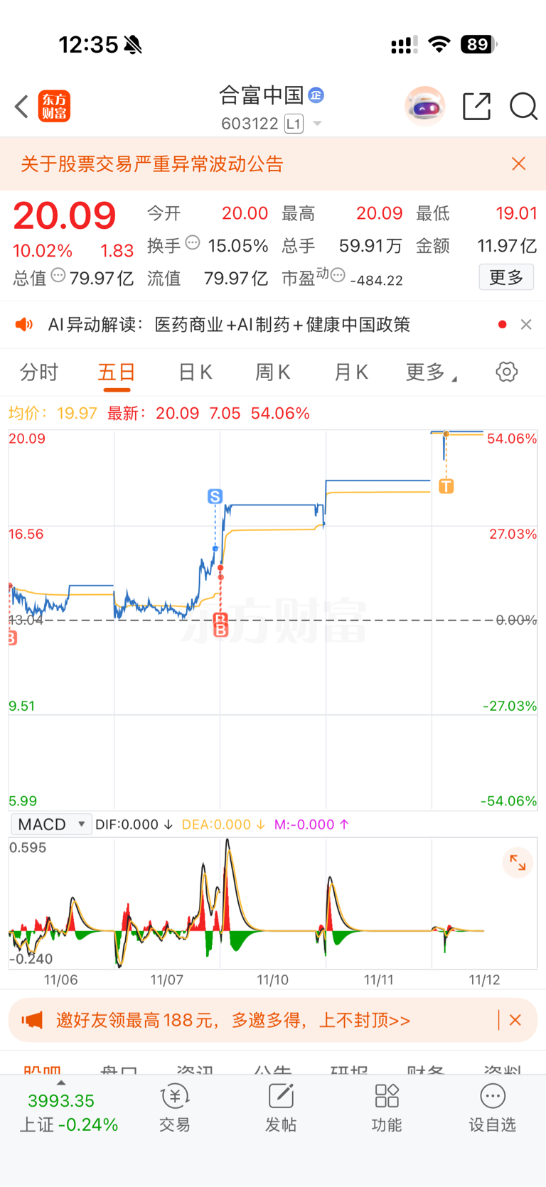 $合富中国(SH603122)$ 想做个T,不见下杀,怕接不回来,赶紧买回,做t怒亏400,少了100股,剩8000股