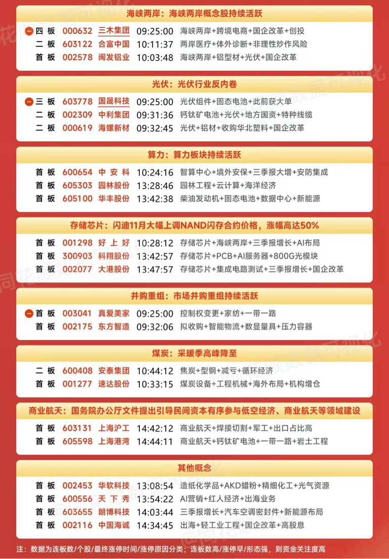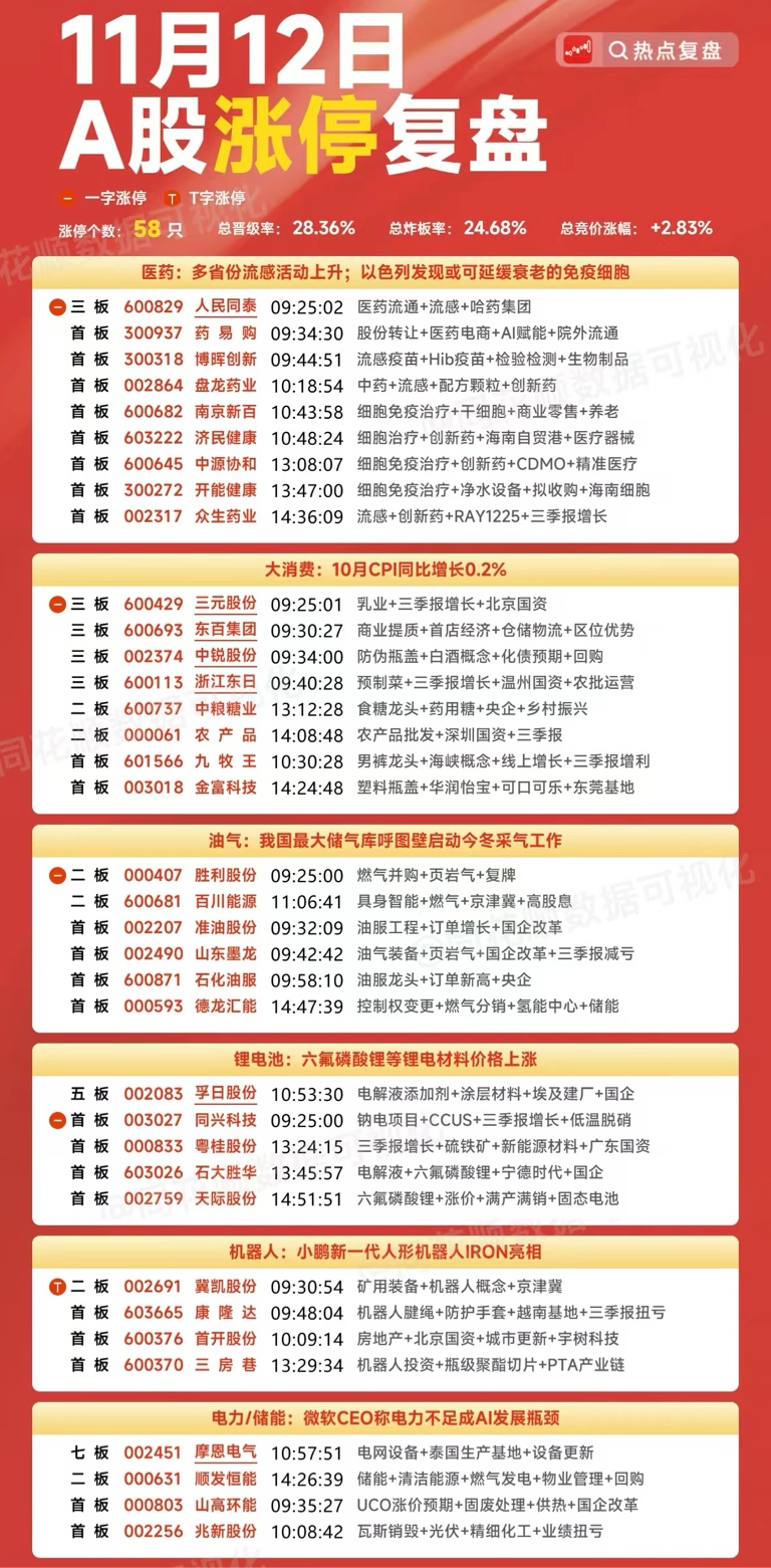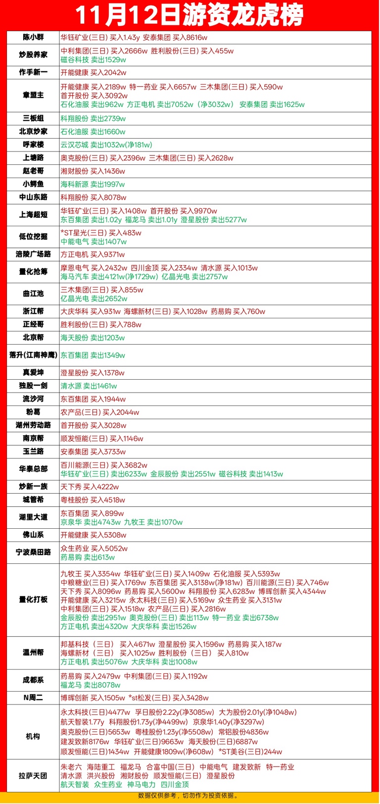 11月12日游资龙虎榜&各大板块涨停个股复盘