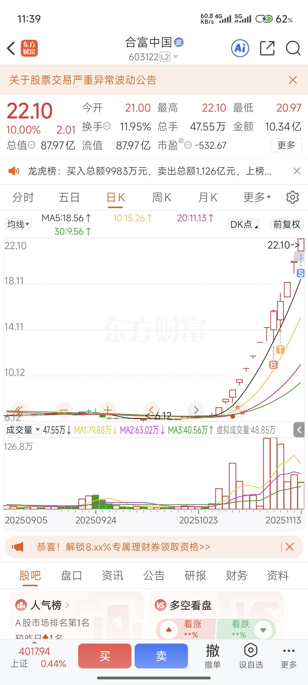 $合富中国(SH603122)$ 目送了,卖出的原因很简单,这两天市场开始企稳的迹象了,叠加200移动,明天周五大概率腥风血雨。做个先手,祝大家发财