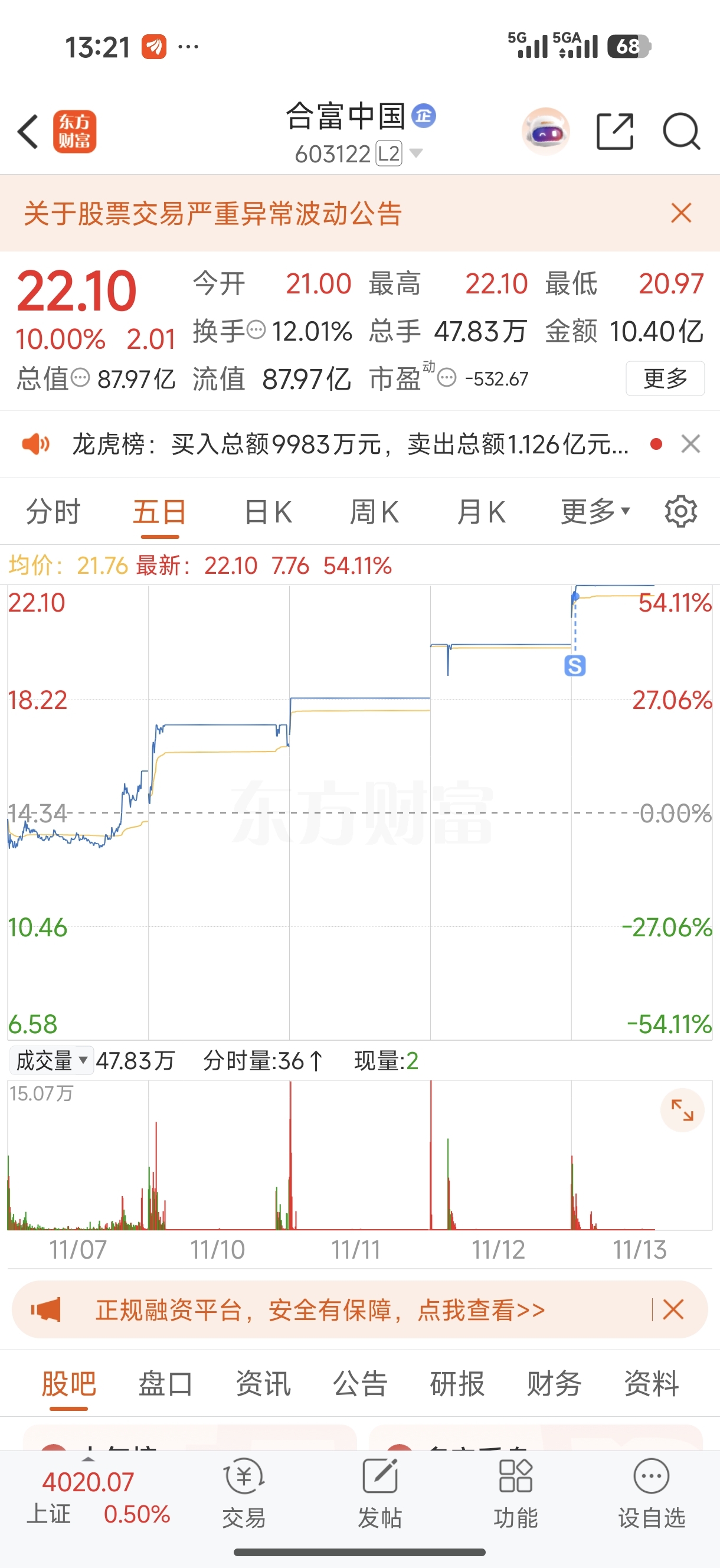 $合富中国(SH603122)$ 早知道,早上不卖你了
