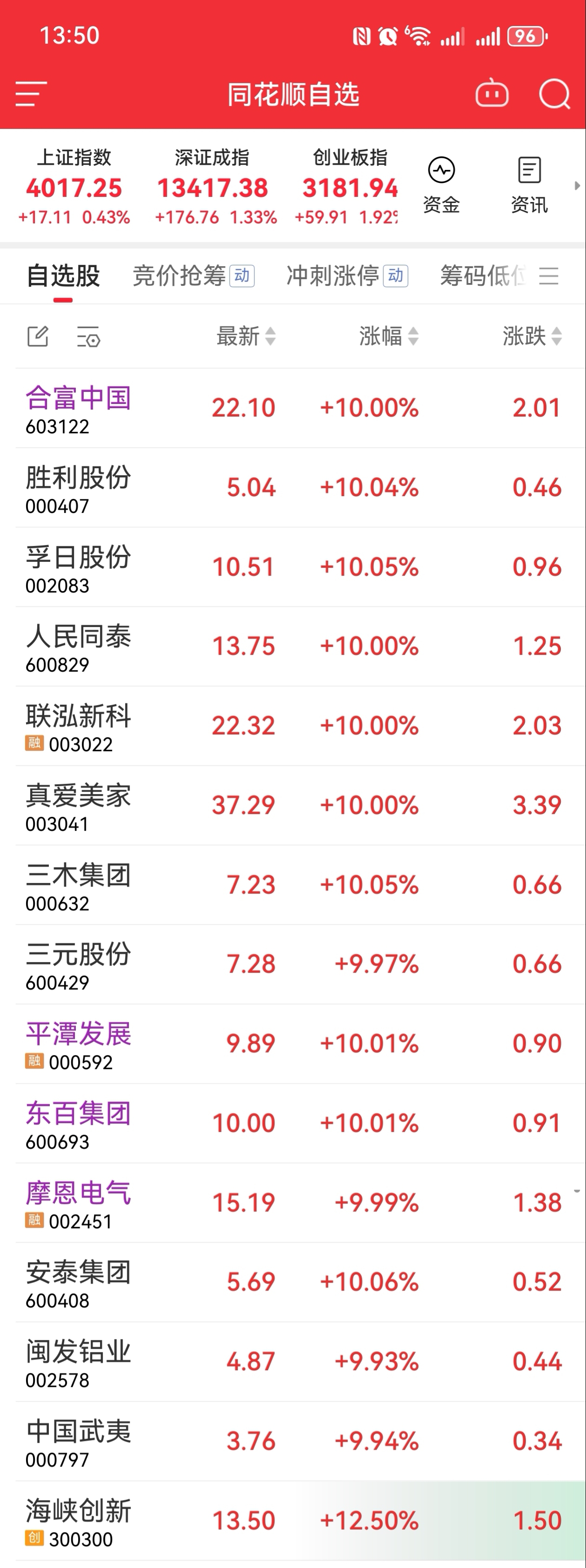 $合富中国(SH603122)$ 11月13日0点:分仓买靠前排的,低吸+打回封。1.单点6天全仓龙头合富中国(人民同泰)盯板吃肉。