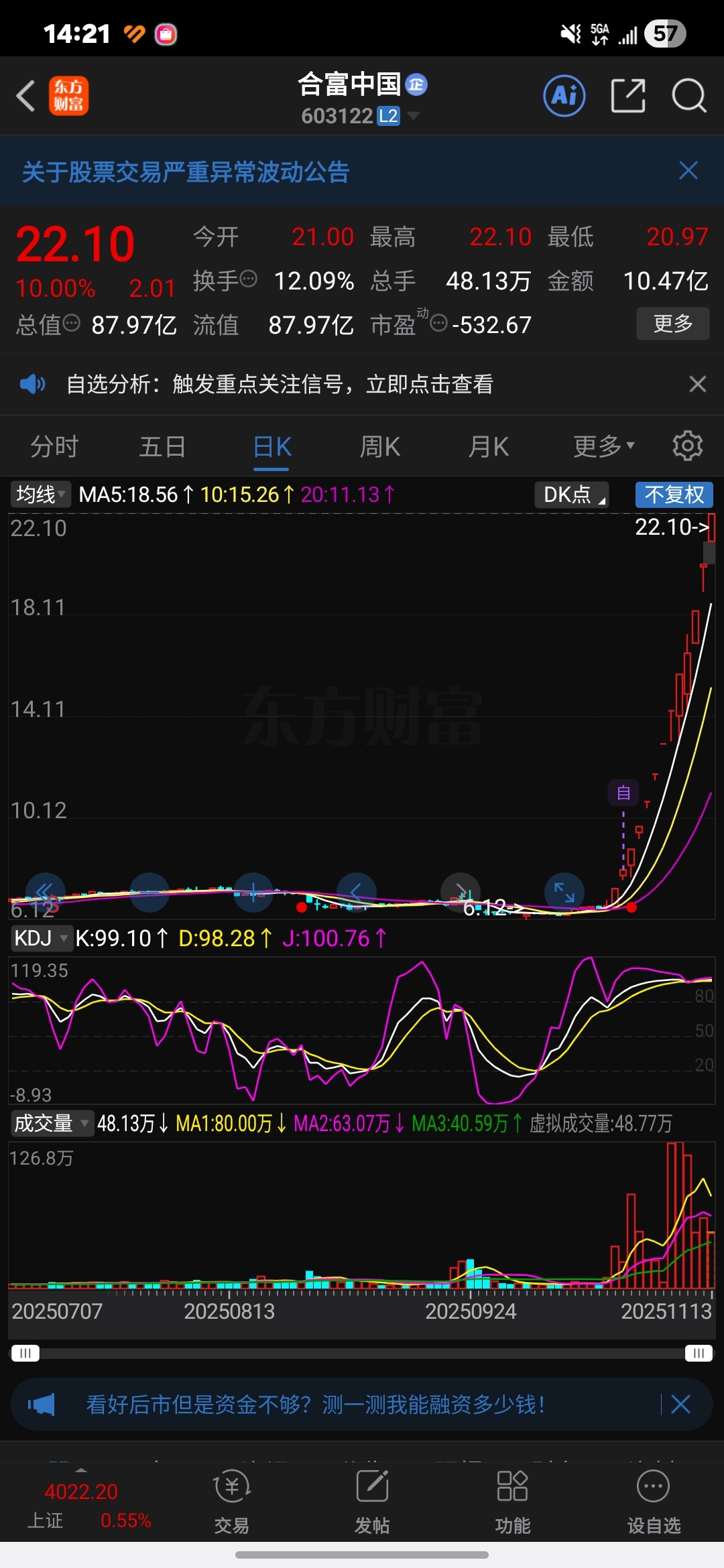 $合富中国(SH603122)$ 三板没买到后面就没敢买了