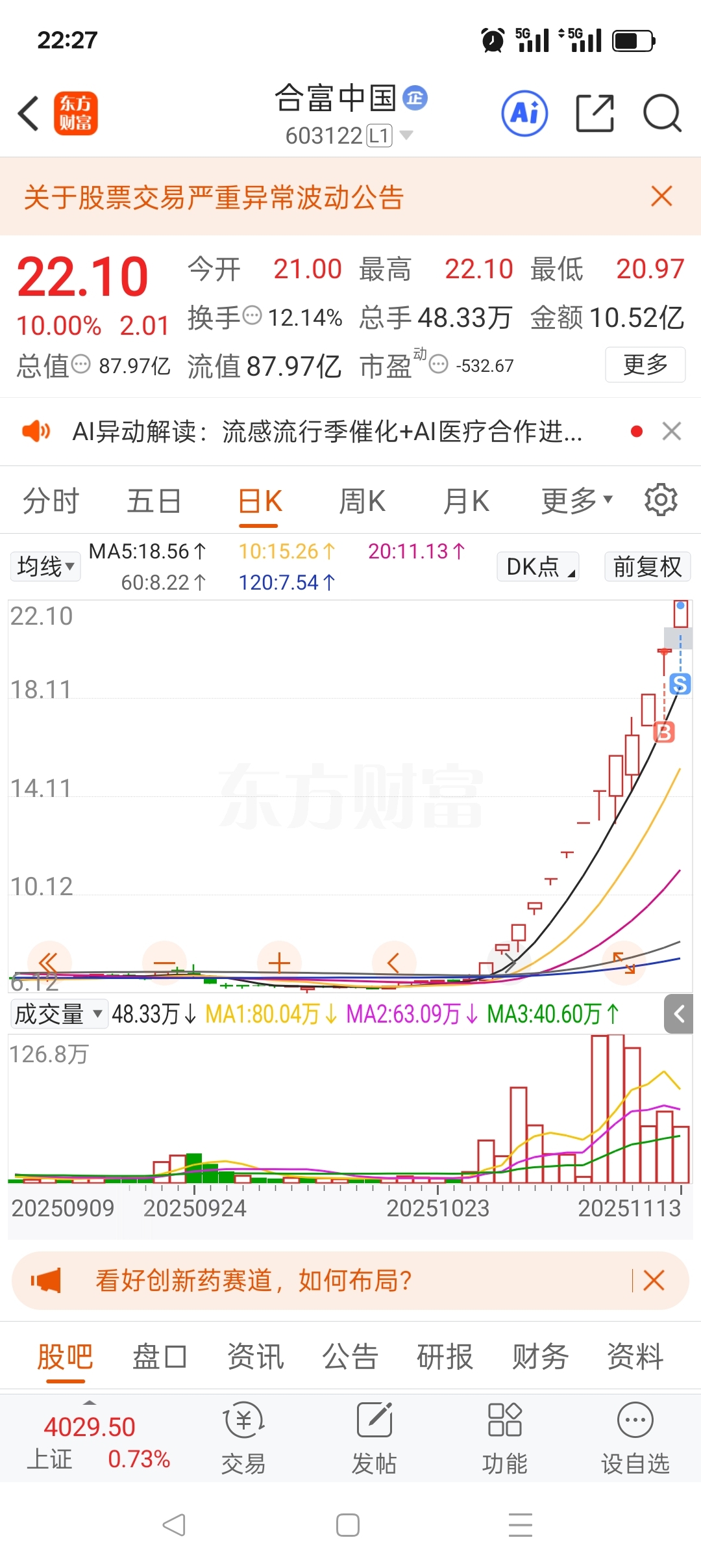 $合富中国(SH603122)$ 成功接力一板赚了台代步车