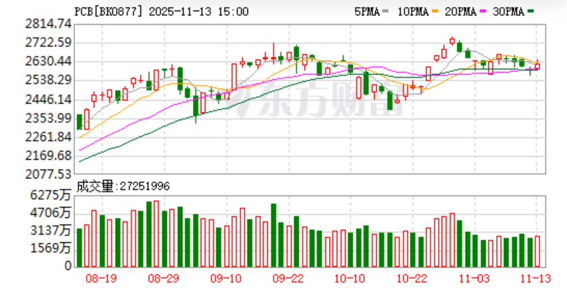 A股具备PCB概念的上市公司共有121家,今年以来行业景气度向好,上市公司整体业绩大幅增长。前三季度,PCB概念板块的上市公司合计实现营业收入5734.51亿元,同比增长17.9%,实现归母净利润342.22亿元,同比增长55.09%。因此这个方向还是可以留意的。