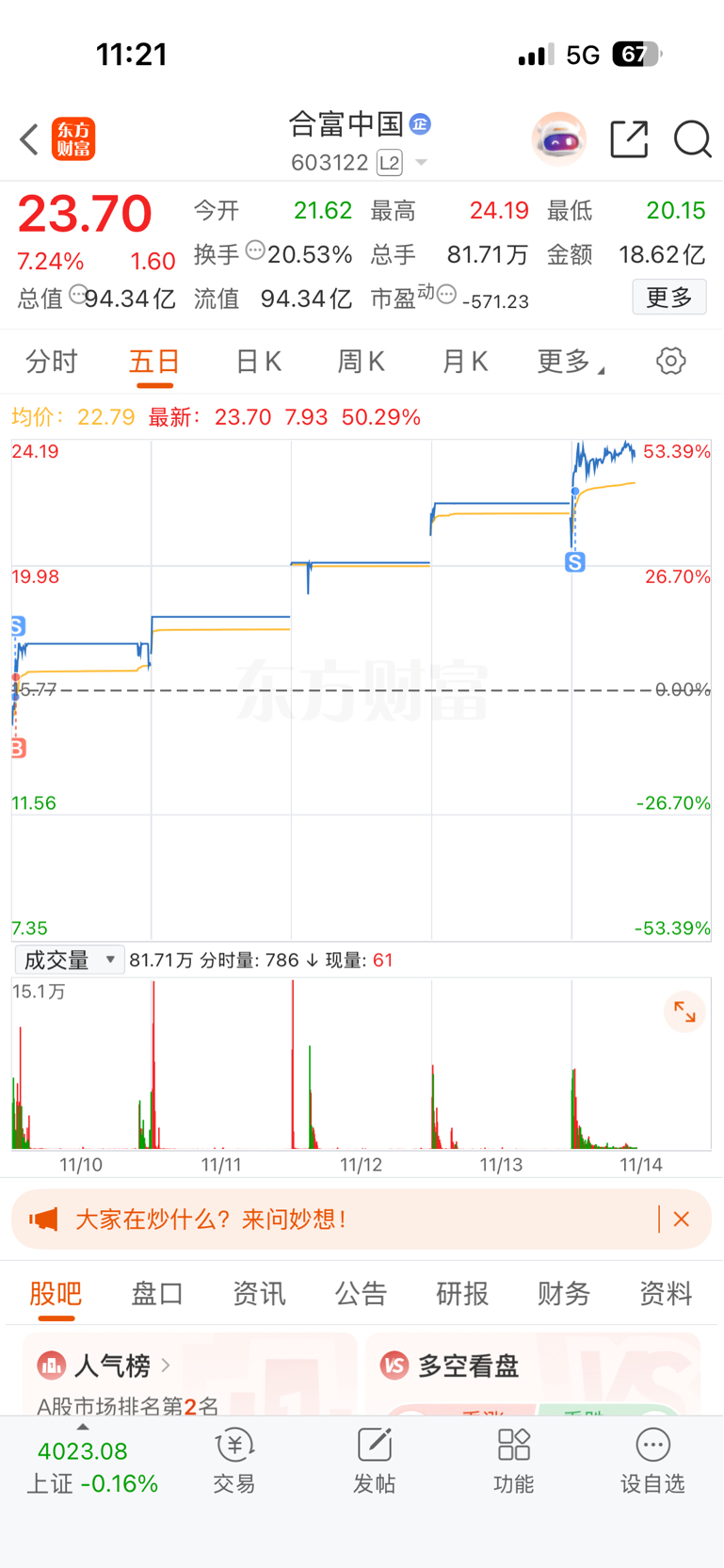 $合富中国(SH603122)$ 富贵险中求。留下发财,早盘就清