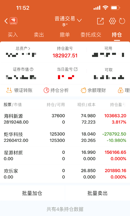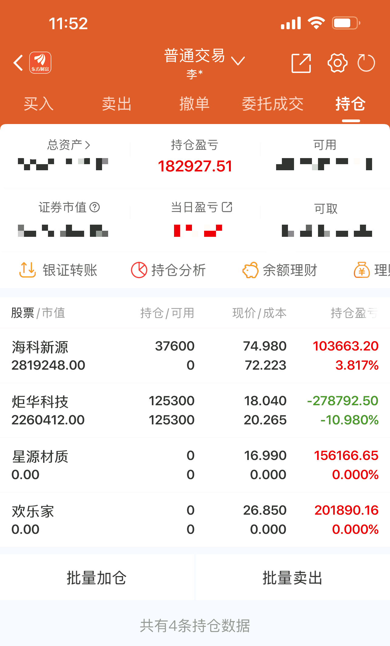 在昨日沪指收盘价创出近十年新高后,今日上午沪指再接再厉,盘中再创新高,A股市场延续指数强势的良好态势。从生命线角度分析,沪指主升行情越发显著,不过当下其他指数稍显逊色,拖了后腿。量能方面,今天上午与昨天相比基本持平,预期成交量在2万亿上下!这个量基本是震荡量!不会连续走加强。整体看,现在还是上证强,创业与科创弱!电风扇轮动还是停不下来,短期内大家要尝试着找节奏与规律!(投资有风险,以上内容不作为投资建议,请勿炒作业)$海科新源(SZ301292)$