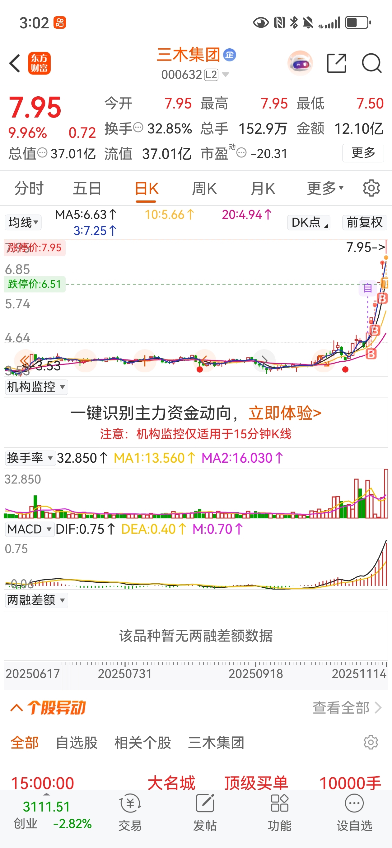 三木迷你仓了,下周继续做连板,加油#炒股日记#